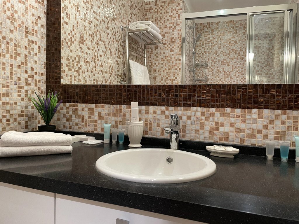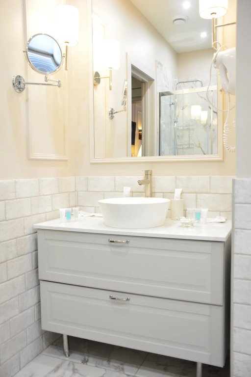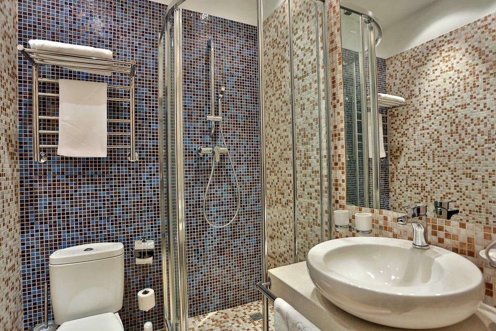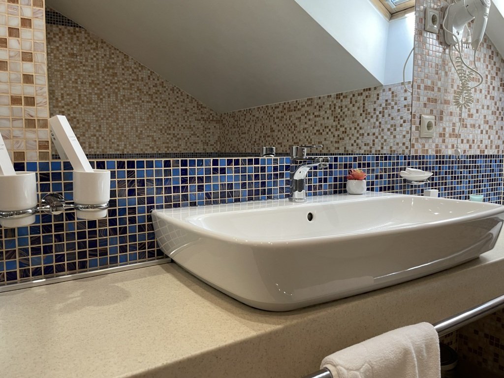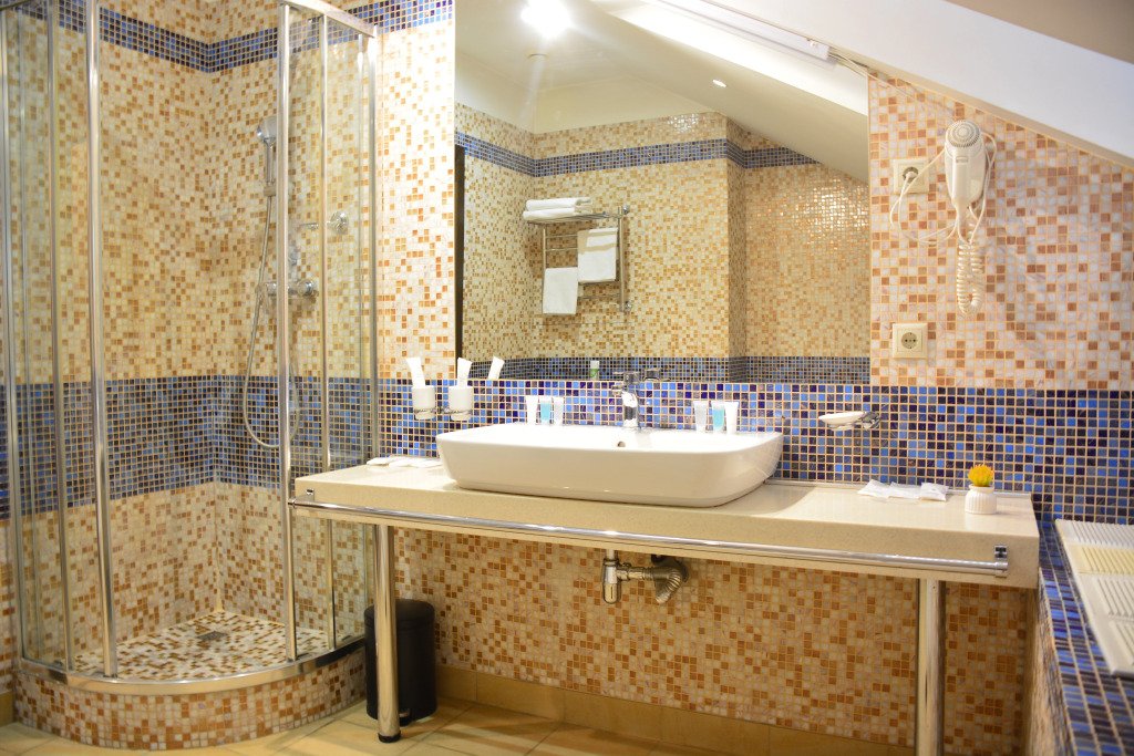 В собственной ванной комнате предлагается фен и бесплатные туалетно-косметические принадлежности.