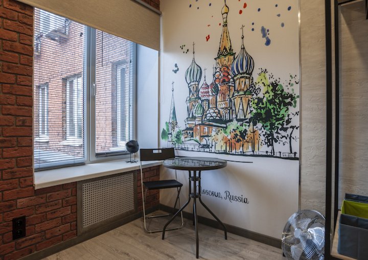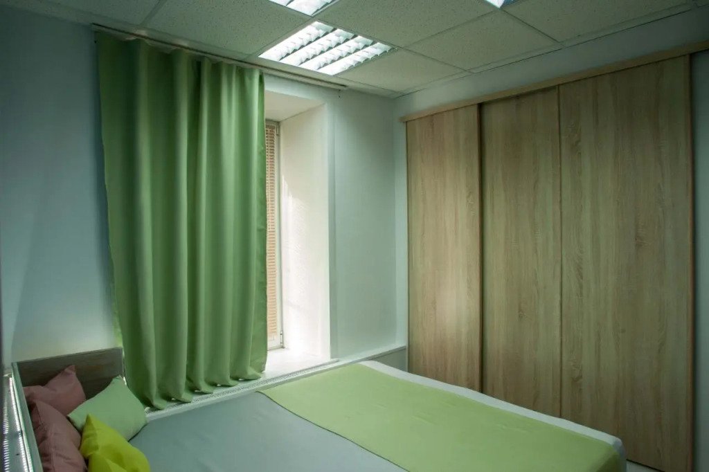 В гостевой зоне есть общая кухня с кофемашиной, электрическим самоваром, микроволновой печью, холодильником, раковиной и посудой. Кроме того, гости могут возпользоваться стиральной машиной и утюгом.