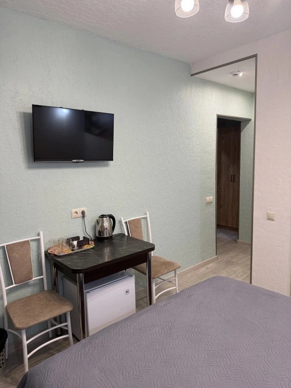 Номер уютно обставлен и оснащён необходимым, чтобы отдохнуть после долгого и насыщенного дня. Имеются телевизор и халат. Перечисленные услуги есть не во всех номерах.