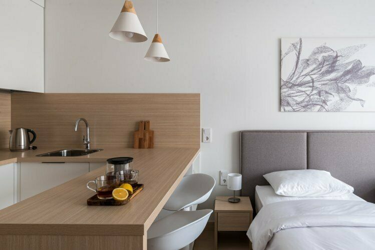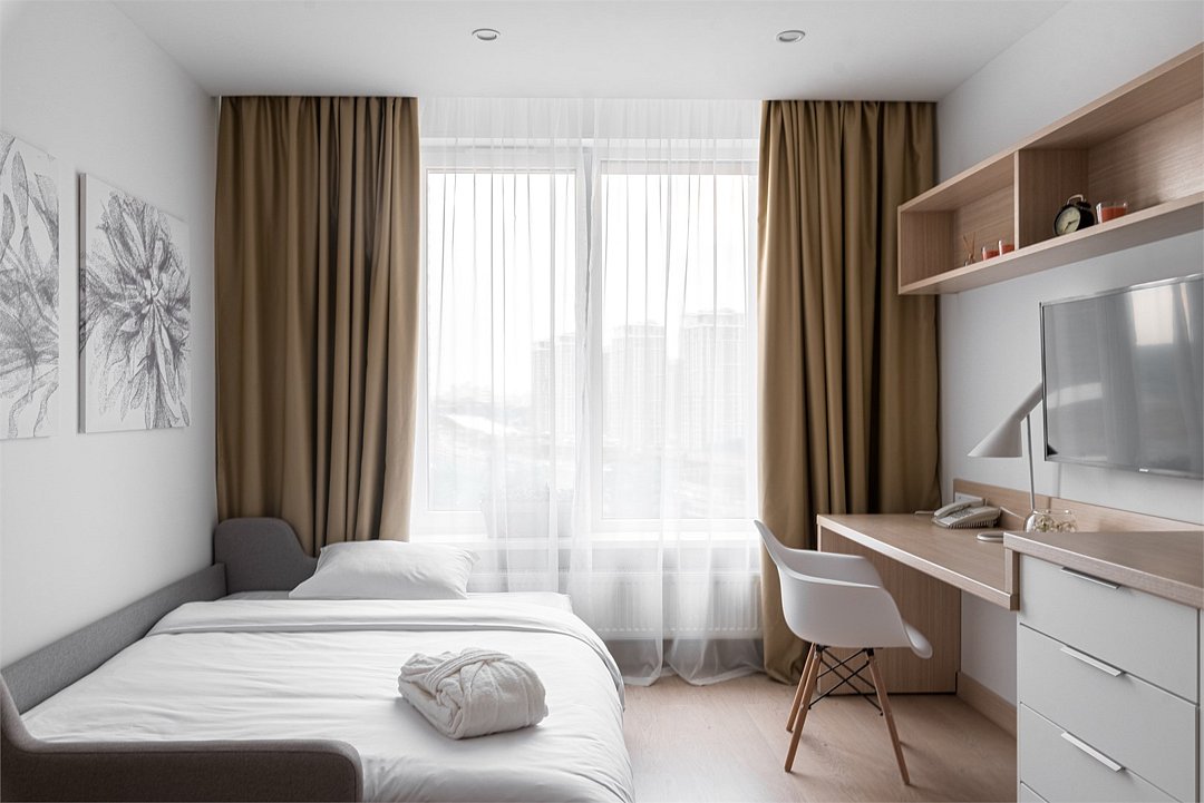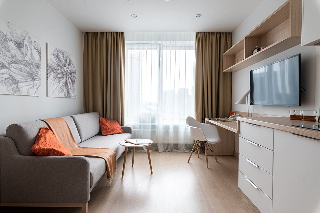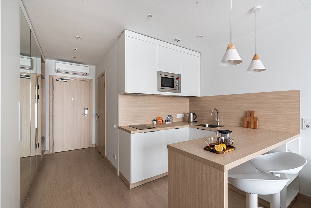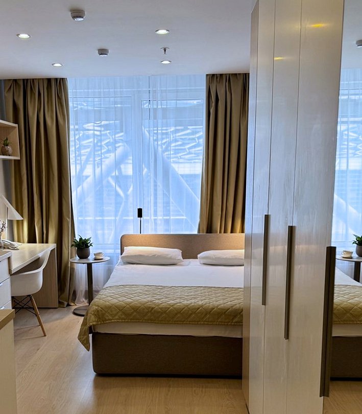 1-комнатный, 2-местный апартамент. площадь: 28кв.м. тип кровати TWIN - две односпальные кровати. ----------------------------------------------------------------------------------- Современный гостиничный номер, оборудованный всем необходимым и полноценной кухней, которая позволяет рассматривать данный вариант размещения и в формате среднесрочного и долгосрочного пребывания.Услуги и удобства