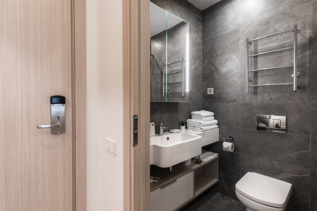 кабельное телевидение, Wi-Fi, интернет, кондиционер, фен, система безопасности, электронные замки, микроволновая печь, утюг, ванная комната, санузел, банные полотенца, тапочки, косметические средства, кровать «King size», гладильная доска, стулья, вешалки, багажная тумба, барная стойка, зеркало, кухня, набор посуды, сейф, стиральная машина, чайник, раковина, питьевая вода, отопление, душ, вид на город, кресло, кухонная посуда, стаканы, столовые приборы, туалетные средства, туалет, сушилка для белья, внутренний телефон, телевизор с плоским экраном, мини-холодильник, шкаф-купе, фанкойл, рабочий стол, чайная станция, можно с питомцамиВ аппартаментах