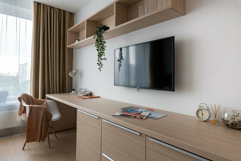 Wi-Fi, интернет, телефон, кондиционер, фен, электронные замки, плита для приготовления пищи, микроволновая печь, утюг, душевая кабина, санузел, водонагреватель, банные полотенца, тапочки, косметические средства, кровать «Queen size», тумбы, стулья, шкаф для одежды, вешалки, багажная тумба, кухня, чайный набор, набор посуды, сейф, стиральная машина, чайник, раковина, отопление, вид на город, ламинат, кухонная посуда, стаканы, столовые приборы, стул, туалетные средства, туалет, сушилка для белья, цифровое тв, внутренний телефон, телевизор с плоским экраном, мини-холодильник, номер для некурящих, рабочий стол, набор для приготовления чая и кофе, вешалки-плечики, затемняющая штора, коворкинг, можно с питомцамиВ номере