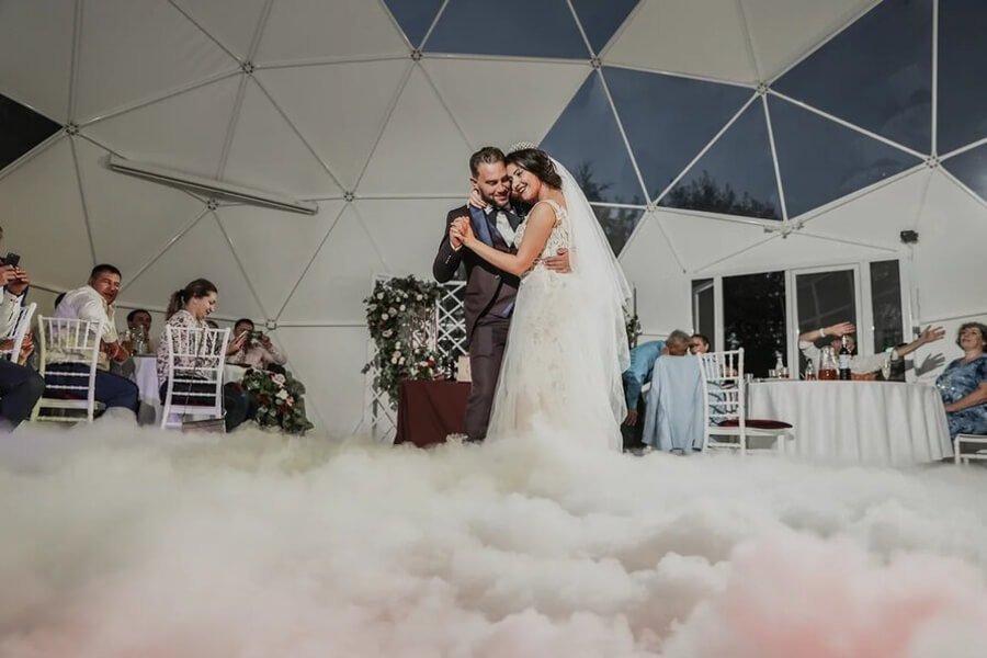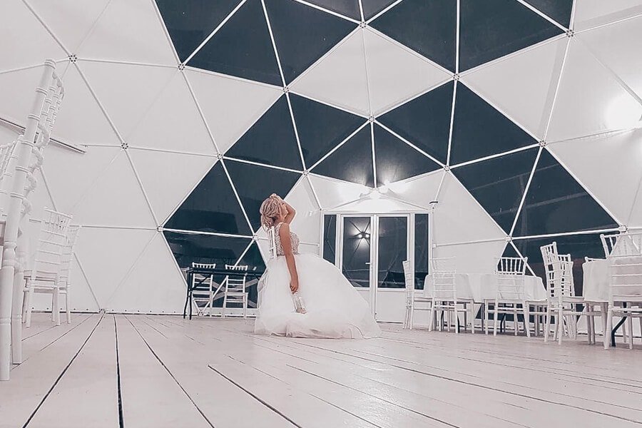- купольный шатер с высотой потолка 6 метров, вместимостью до 60 гостей;