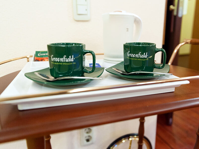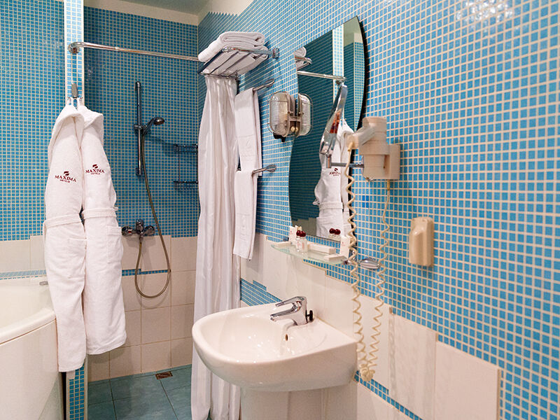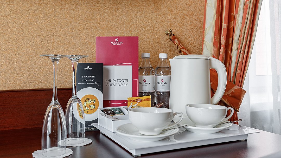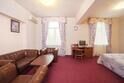 - Площадь номера от 32 м2. - Две раздельные кровати 90*200 см. - Бесплатный Wi-Fi - Индивидуальный сейф - Чайная пара - Чай, кофе, сахар и сливки - Расческа - Кондиционер - Телефон - Гарнитур мягкой мебели - Журнальный столик - Письменный стол - ЖК телевизор - Спутниковое телевидение - Шкаф для верхней одежды - Дополнительное место предоставляется по запросу (стоимость без питания 1000 руб./сутки) В ванной комнате: - Ванна - Фен - Тапочки - Комплект полотенец - Косметические принадлежностиУслуги и удобства