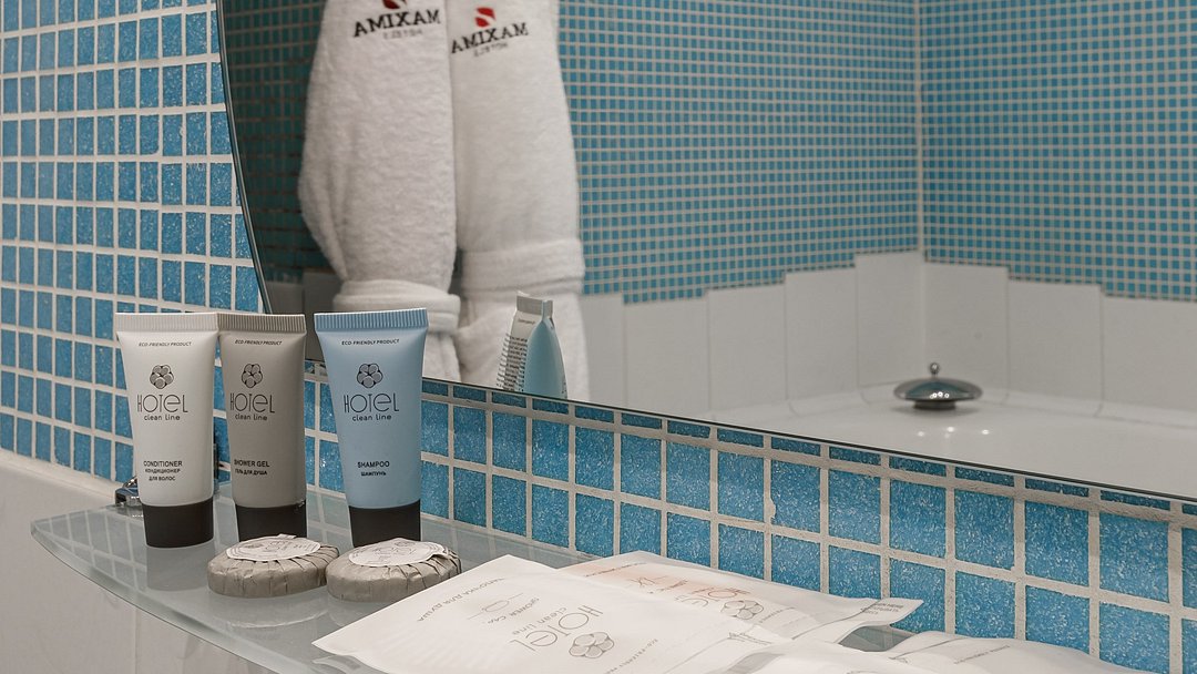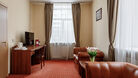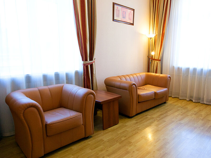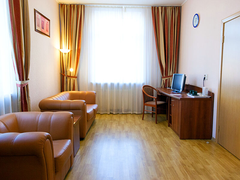 - Площадь номера от 28 м2. - Кровать 140*200 см. - Бесплатный Wi-Fi - Индивидуальный сейф - Чайная пара - Чай, кофе, сахар и сливки - Расческа - Кондиционер - Телефон - Гарнитур мягкой мебели - Журнальный столик - ЖК телевизор - Спутниковое телевидение - Шкаф для верхней одежды - Дополнительное место предоставляется по запросу (стоимость без питания 1500 руб./сутки) - Дети до 10 лет включительно размещаются бесплатно без предоставления дополнительного места В ванной комнате: - Ванна - Фен - Тапочки - Комплект полотенец - Косметические принадлежностиУслуги и удобства