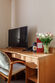 телевизор, спутниковое телевидение, кабельное телевидение, интерактивное телевидение, Wi-Fi, телефон, светильник, настольные лампы, фен, электронные замки, ванная комната, ванна или душевая кабина, санузел, тапочки, гигиенические средства, косметические средства, двуспальная кровать, ортопедический матрас, диван, кресла, тумбы, стулья, шкаф для одежды, вешалки, журнальный столик, письменный стол, багажная тумба, зеркало, письменные принадлежности, чайный набор, обслуживание номеров, информационная карта, меню, сейф, чайник, унитаз, раковина, мягкая мебель, косметическое зеркало, вид на город, вид во двор, без питомцевВ номере
