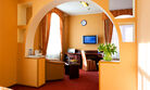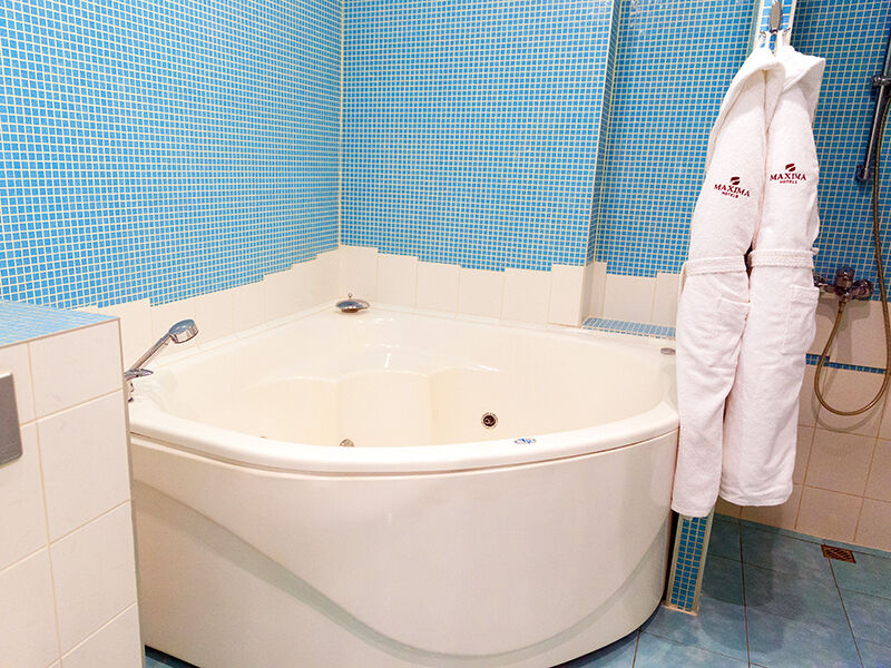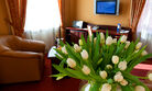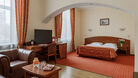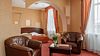 - Площадь номера 32-34 кв.м. - Большая двуспальная кровать 160/200 см - Бесплатный Wi-Fi - Индивидуальный сейф - Чайная пара - Чай, кофе, сахар и сливки - Минеральная вода - Швейный набор - Расческа - Кондиционер - Два кожаных кресла - Телефон - Письменный стол - Журнальный столик - Широкоформатный ЖК телевизор - Музыкальный центр - Спутниковое телевидение - Шкаф для верхней одежды - Дополнительное место предоставляется по запросу (стоимость без питания 1500 руб./сутки) - Дети до 10 лет включительно размещаются бесплатно без предоставления дополнительного места В ванной комнате: - Ванна с гидромассажем - Душ - Фен - Одноразовый зубной набор - Два халата - Тапочки махровые - Комплект полотенец - Косметические принадлежностиУслуги и удобства