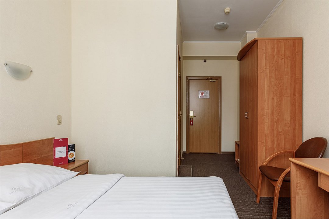 - Площадь номера 14 кв.м. - Кровать 90*200 см. - Бесплатный Wi-Fi - Индивидуальный сейф - Электрический чайник - Чайная пара - Чай, кофе, сахар и сливки - Питьевая вода в бутылках в день заселения - Телефон - Телевизор - Спутниковое телевидение - Шкаф для верхней одежды - Дополнительное место не предусмотрено В ванной комнате: - Душ - Фен - Комплект полотенец - косметические средства - ТапочкиУслуги и удобства