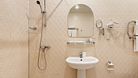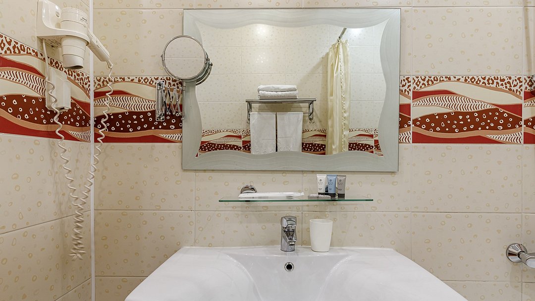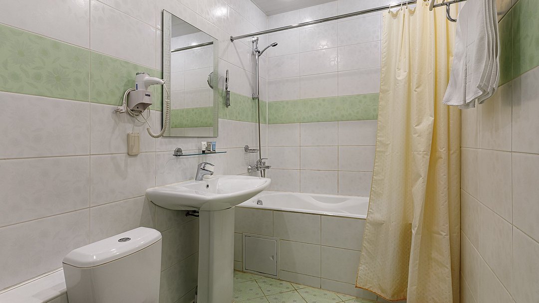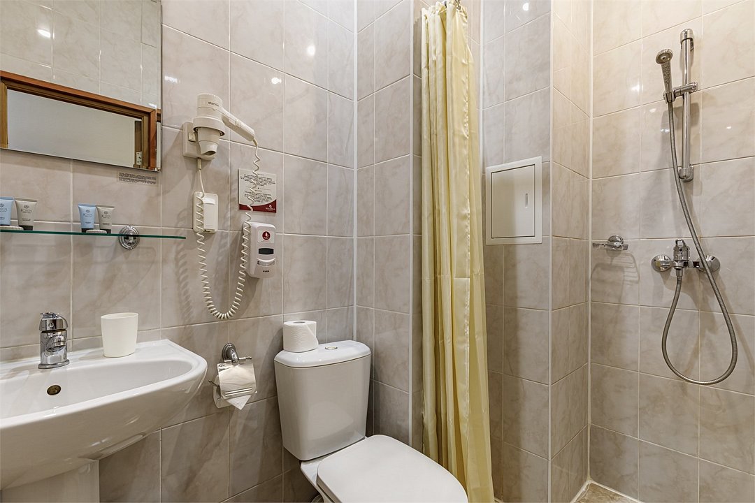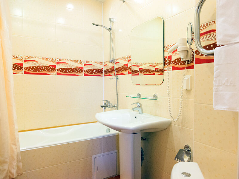 телевизор, спутниковое телевидение, кабельное телевидение, Wi-Fi, телефон, светильник, настольные лампы, фен, электронные замки, ванная комната, душевая кабина, санузел, тапочки, гигиенические средства, косметические средства, односпальная кровать, две односпальные кровати, ортопедический матрас, тумбы, стулья, шкаф для одежды, вешалки, письменный стол, багажная тумба, зеркало, две комнаты, письменные принадлежности, обслуживание номеров, информационная карта, меню, унитаз, раковина, косметическое зеркало, ковровое покрытие, вид на город, вид во двор, номер для некурящих, без питомцевВ номере