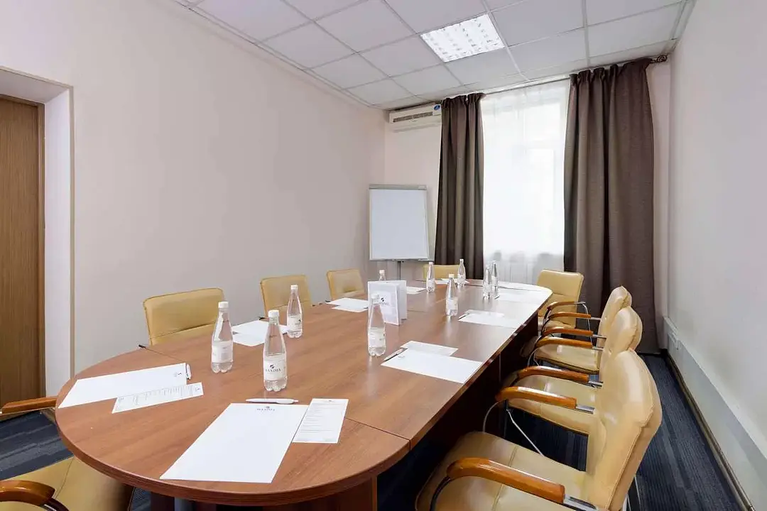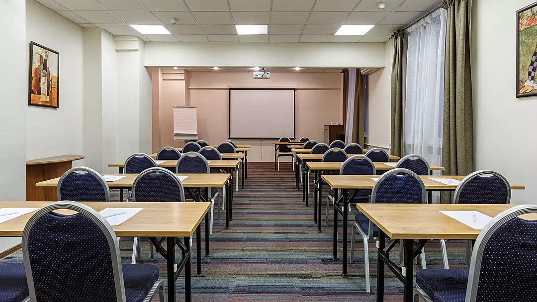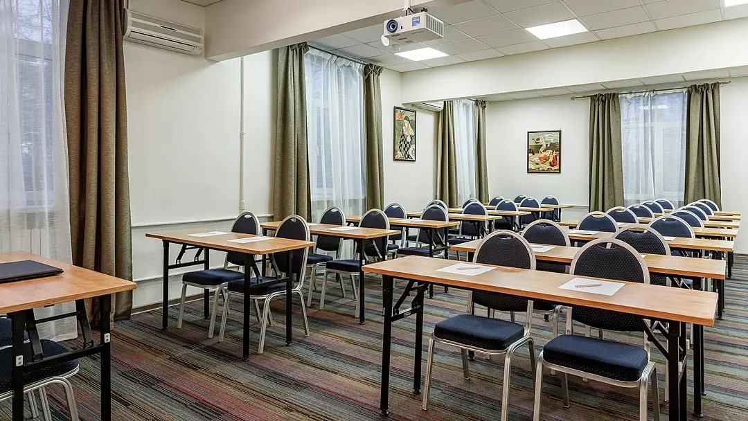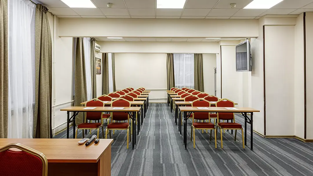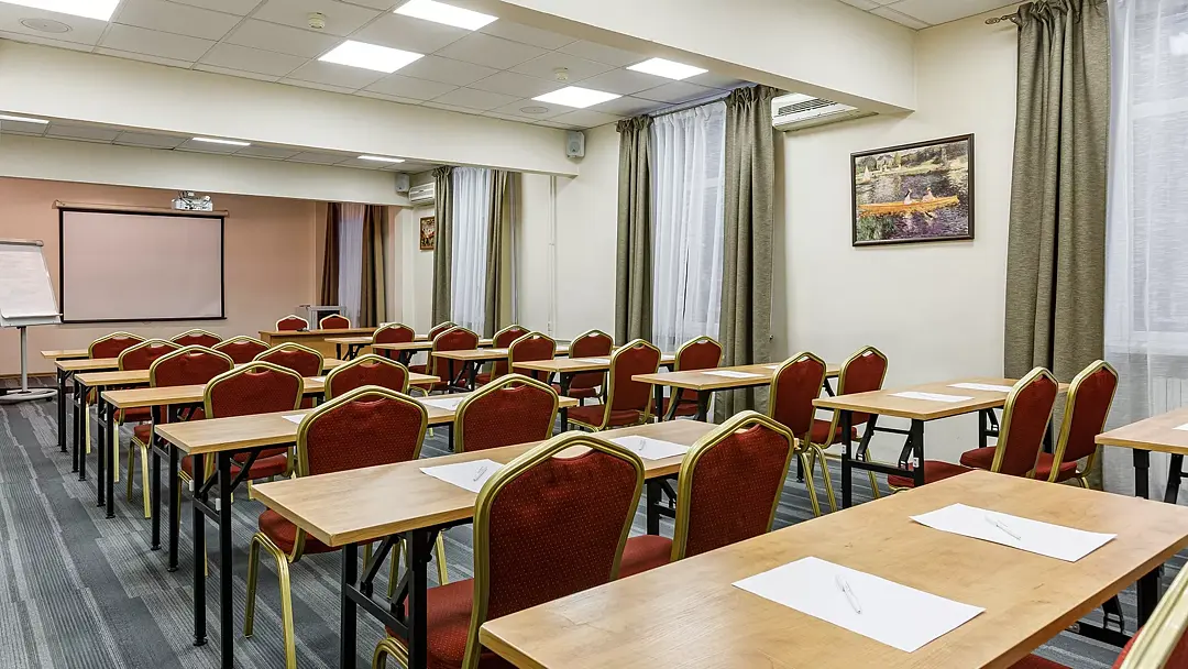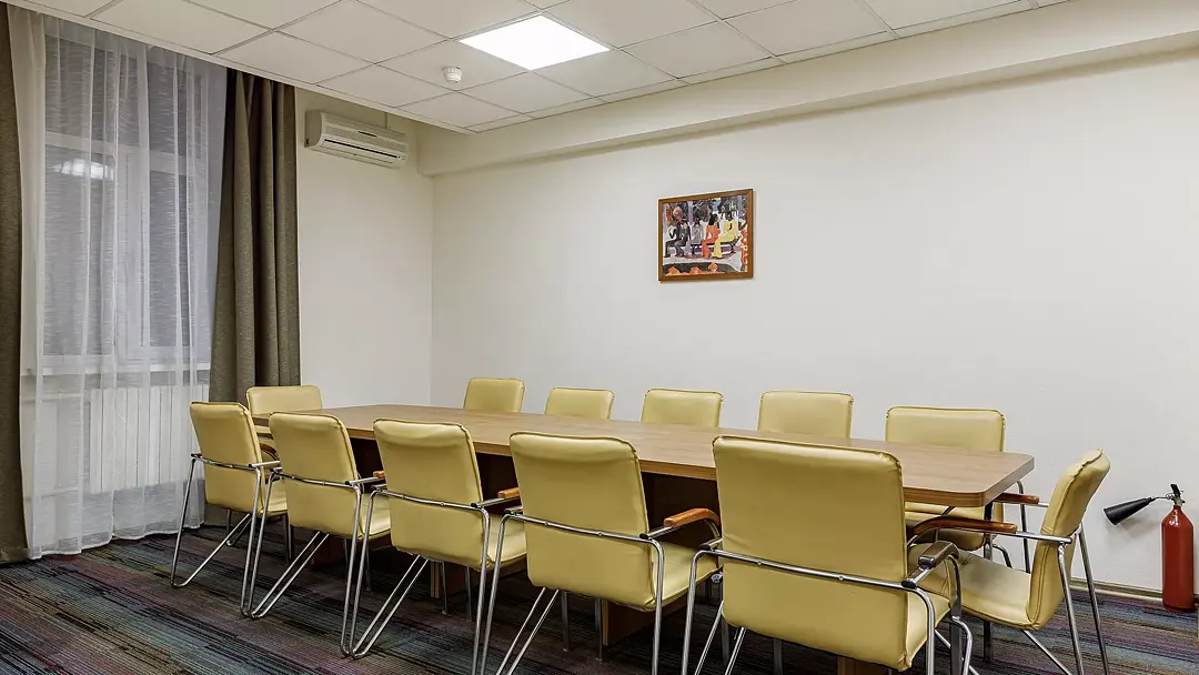 Небольшой зал площадью 27,5 м2 и вместимостью до 20 человек идеально подходит для проведения совещаний, переговоров, деловых встреч, а также небольших тренингов. Для удобства гостей в зале имеется беспроводной доступ к сети интернет.