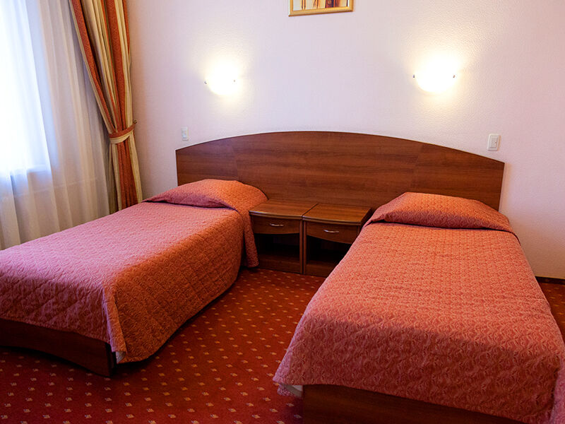 - Площадь номера от 18 м2. - Две раздельные кровати 90*200 см. - Бесплатный Wi-Fi - Индивидуальный сейф - Электрический чайник - Чайная пара - Чай, кофе, сахар и сливки - Питьевая вода в бутылках в день заселения - Письменный стол - Телефон - Телевизор - Спутниковое телевидение - Шкаф для верхней одежды - Дополнительное место не предусмотрено В ванной комнате: - Душ - Фен - Комплект полотенец - Диспенсер с моющим средством - ТапочкиУслуги и удобства