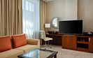 Просторный элегантный номер с большой кроватью и удобной гостиной зоной. Идеально подходит для семейного размещения. Размещение в категории Полулюкс представляет гостям включенный завтрак. Вид из окна и планировка номера могут отличаться от представленных на фотографиях.Услуги и удобства