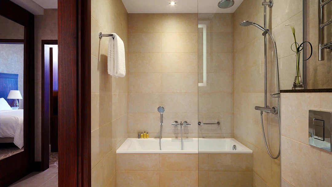 кабельное телевидение, Wi-Fi, система климат-контроля, настольные лампы, фен, электронные замки, кофемашина, утюг, ванная комната, дополнительный санузел, банные полотенца, тапочки, гигиенические средства, косметические средства, кровать «King size», гладильная доска, кресла, стулья, шкаф для одежды, журнальный столик, багажная тумба, зеркало, две комнаты, мини-бар, чайный набор, обслуживание номеров, информационная карта, меню, сейф, минеральная вода, чайник, унитаз, раковина, косметическое зеркало, питьевая вода, гостиная зона, ковровое покрытие, душ, вид на город, кресло, вид во двор, туалетные средства, туалет, раскладной диван, внутренний телефон, телевизор с плоским экраном, мини-холодильник, шкаф-купе, номер для некурящих, рабочий стол, неограниченное посещение СПА, фитнес-зона, чайная станция, можно с питомцамиВ гостиничном номере