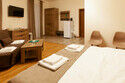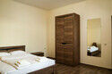 Удобства в номере: одна двухспальная кровать, две отдельных кровати, постельное белье, сплит система, холодильник, шкаф, комод, тумбочки прикроватные, стулья, набор посуды, чайник электрический, электронные замки, балкон, санузел, гигиенические наборы, махровые халаты, полотенца, фен, жк телевизор, цифровое телевидение.