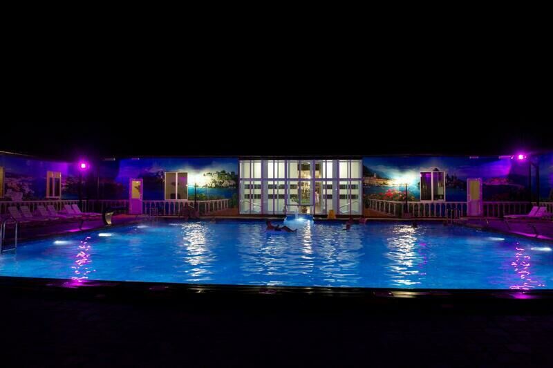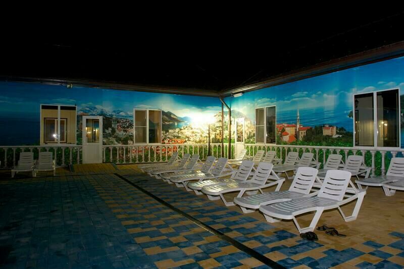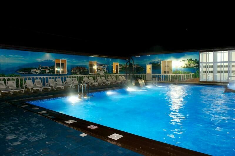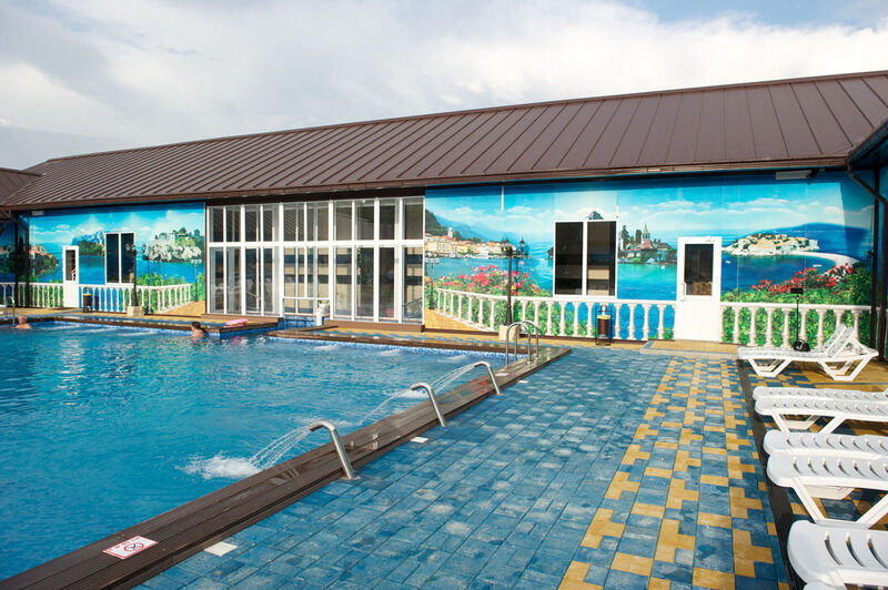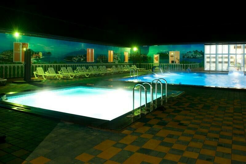 Читать полностьюНа территории два бассейна с термальной водой. Малый бассейн глубиной 0,8м., в большом 1,35-1,55м. Работают гидро-, аэромассажи, водопады, гейзеры. В вечернее время работают софиты(цветотерапия) и музыка релакс. Температура воды 38-39 градусов. Вода в бассейне всегда чистая, работает современная система очистки воды. В холодное время вход в бассейн можно осуществлять из помещения (через аквариум).
