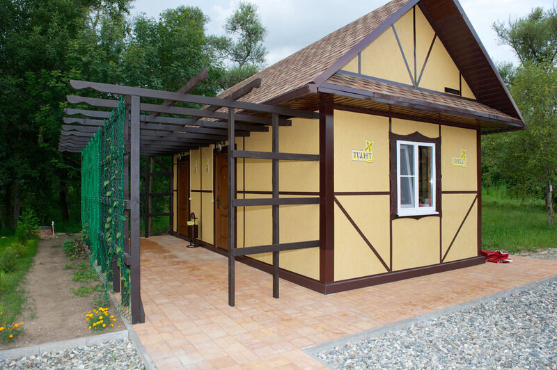 Комфортабельные, отапливаемые домики для отдыха в любую погоду. Все строения выполнены из натуральных материалов, что создает особый комфорт. Возле домиков расположены живописные клумбы с цветами, мангал, пластиковые столы и стулья.Домики «Шале» дневного пребывания.