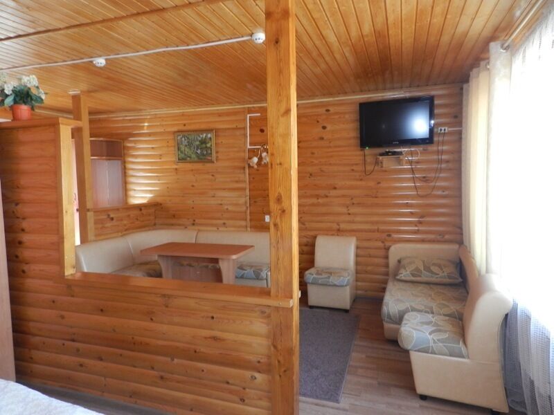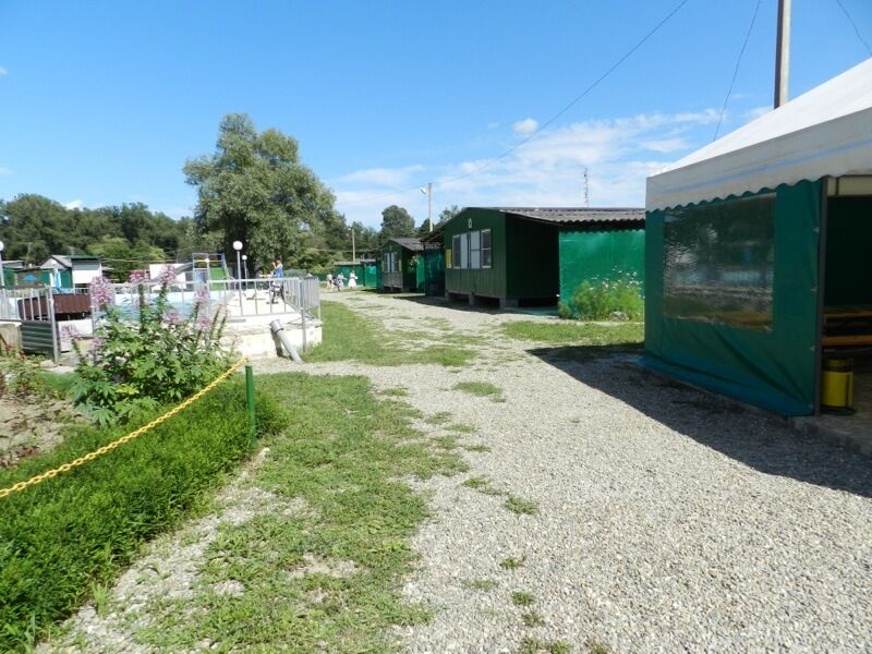 На территории имеются два корпуса с жилыми домиками. Имеются благоустроенные номера-студии, номера с удобствами и без них. В закусочной посетителям предложат комплексные обеды или блюда на выбор. Также имеются площадки-беседки для барбекю. Работает парилка и фитобар, который предлагает ассортимент чаев из трав.
