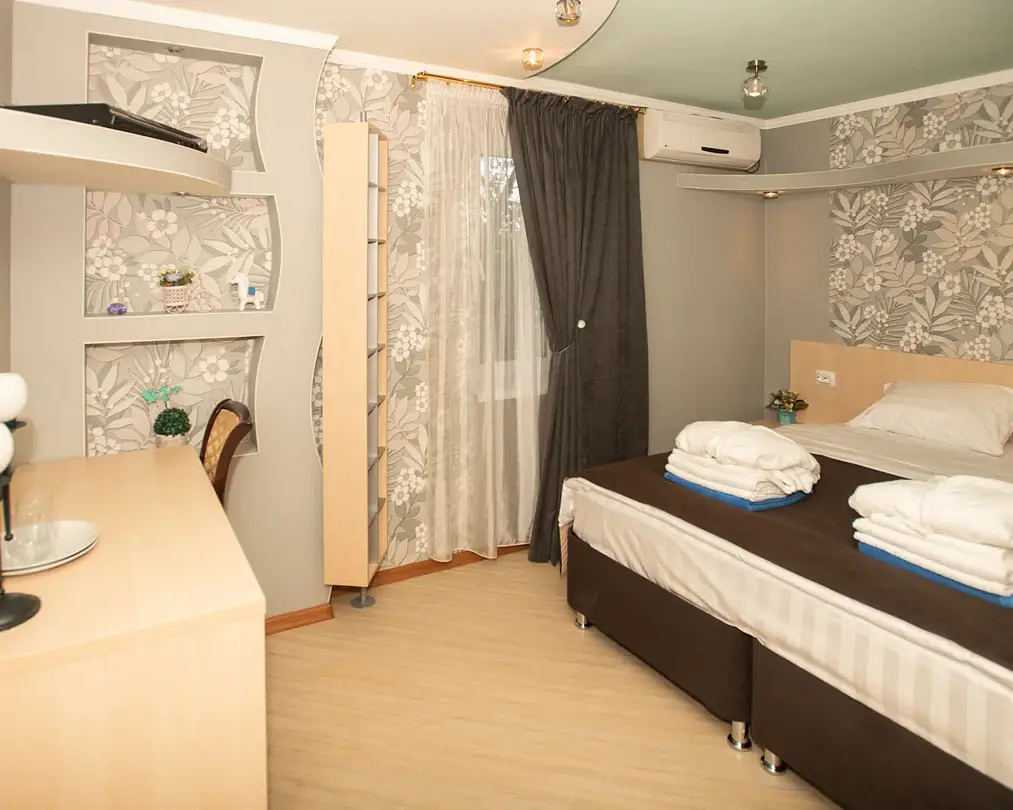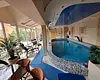 Трехкомнатные апартаменты это номер с доступом в термальный бассейн, кухней, мангальной зоной. Рассчитан максимум на 6 взрослых и 2ое детей. В вашем распоряжении оснащенная всем необходимым кухня, гостиная, отдельная комната с сан.узлом и душевой, комната рядом с бассейном с двуспальной кроватью, спальное зонирование в гостиной с еврокроватью, сан.узел 2. В стоимость входит: купание в термальном бассейне, тапочки, 4 вида полотенец, халаты, зуб. наборы, гигиенические принадлежности.Услуги и удобства