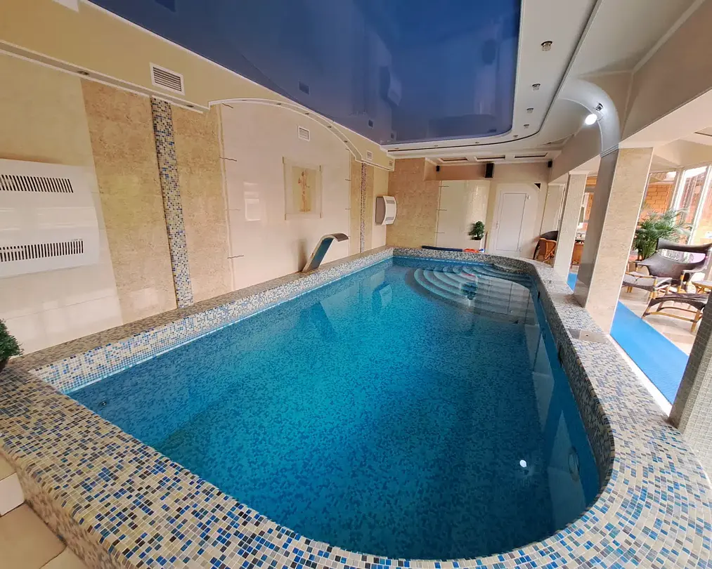 Вилла Александрия рассчитана на 12-14 человек. Почему мы лучший вариант для отдыха компанией или всей семьей? При полном бронировании у вас в распоряжении вся вилла, бассейн с лечебной термальной водой 34-36°, светомузыка в бассейне для ваших вечеринок, все удобства, каминная, просторная гостиная, мангальная зона, своя кухня, просторный зеленый двор, плодовый сад, комфортные спальные комнаты Вам не будут мешать другие шумные компании.Услуги и удобства
