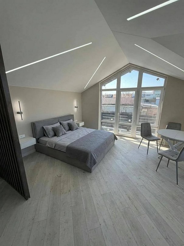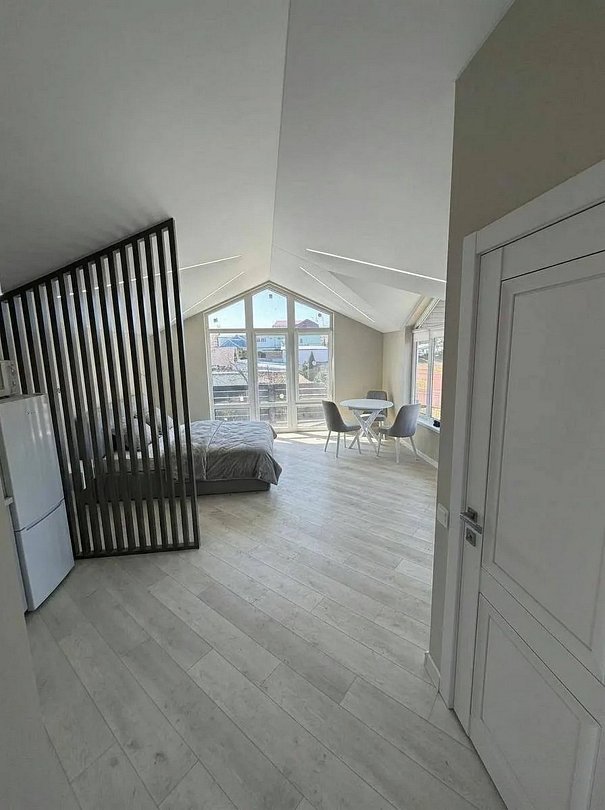 Имеет балкон, террасу и спальню с приятным интерьером.