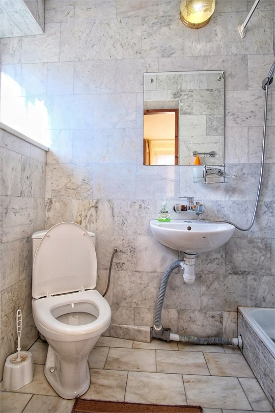 ванна или душевая кабина, банные полотенца, балкон, двуспальная кровать, шкаф для одежды, вешалки, звуконепроницаемые стены и окна, отопление, вид на сад, вид на город, вид во двор, паркет, стол, туалет, принадлежности для барбекю, вид на горыВ номере