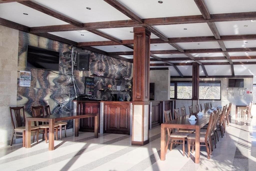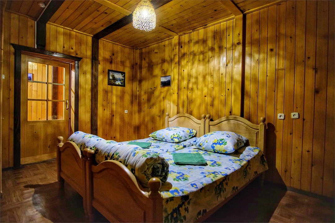 К услугам гостей — уютные номера, выполненные из экологически чистых материалов: дерева и мрамора, а также кафе с панорамными окнами, откуда открывается вид на горные пейзажи. В кафе можно комфортно разместить до 50 человек. На территории также обустроена мангальная зона с лавочками для отдыха на свежем воздухе.