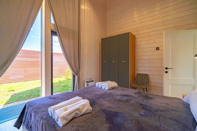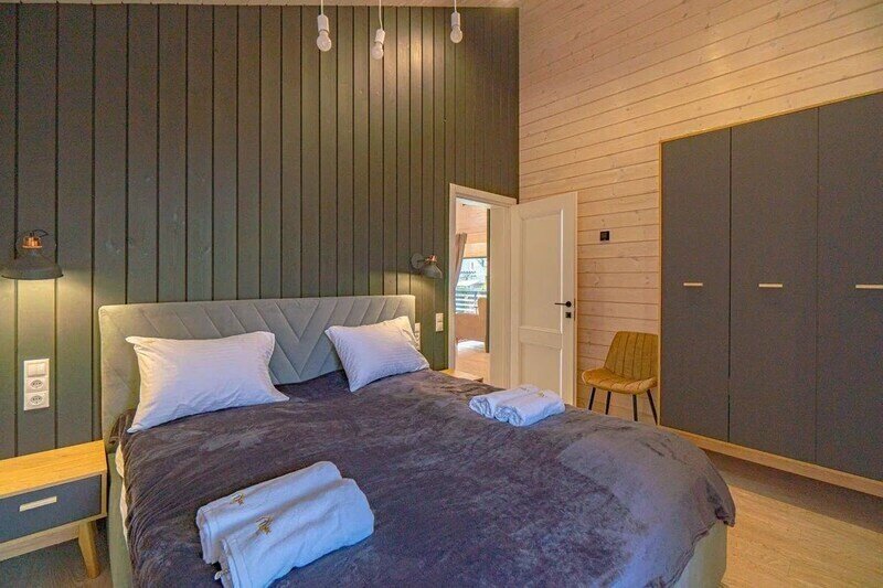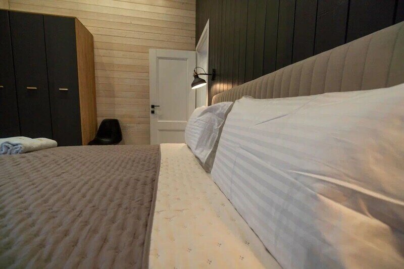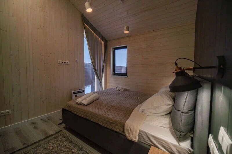 - две спальни с панорамными окнами и большими 2-спальными кроватями, оборудованными ортопедическими матрасами;