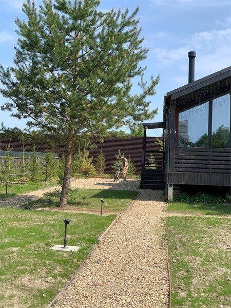 Также вы всегда можете пожарить шашлыки прямо на участке! Перед домом оборудована мангальная и костровая зоны, а на крытой террасе — уютная зона для отдыха со столиком, стульями и подвесным креслом.