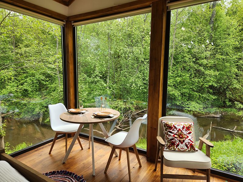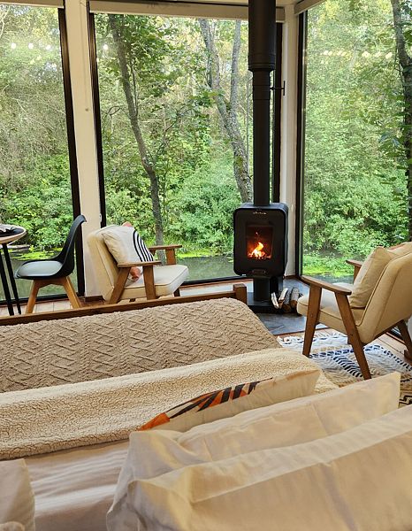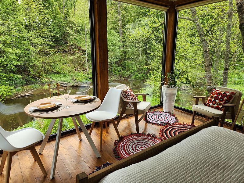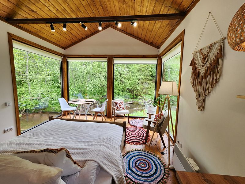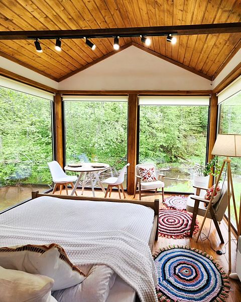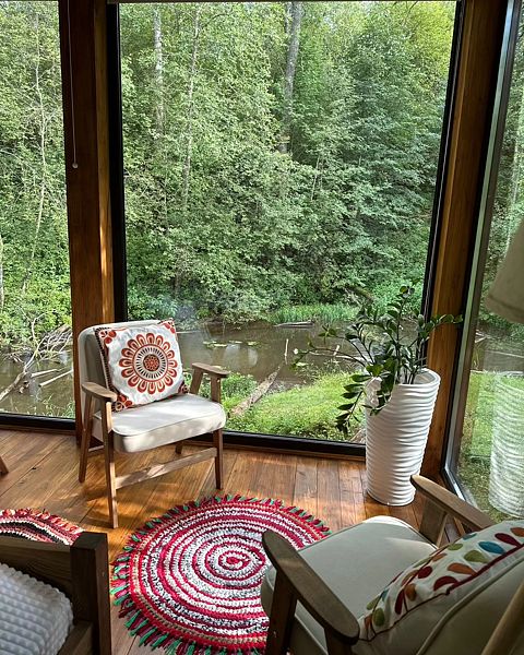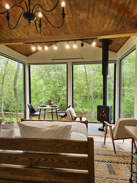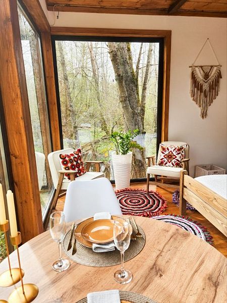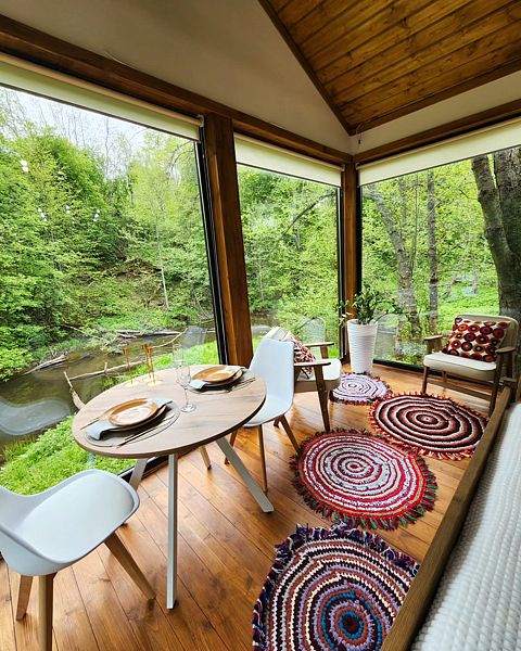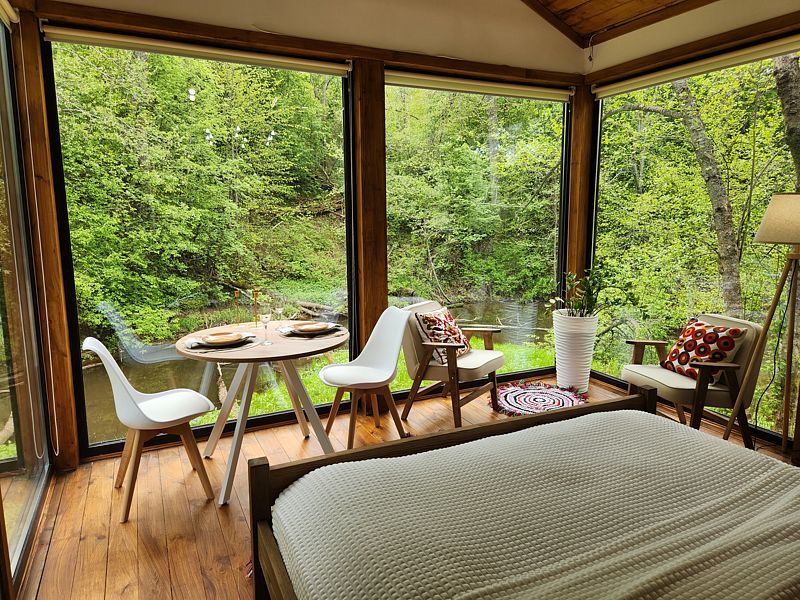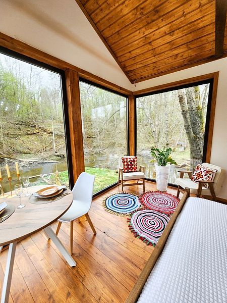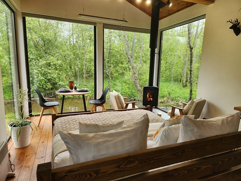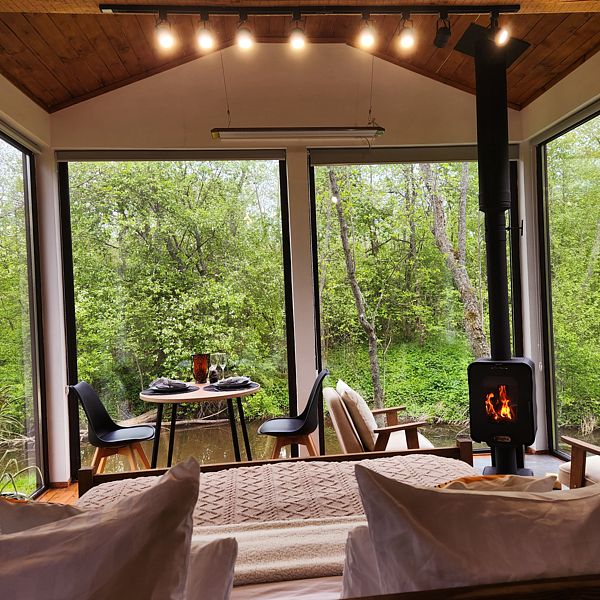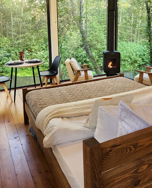Уютные дома с панорамными окнами, расположенные на островах и мысах, образованных меандрами реки, подарят вам незабываемый отдых в окружении нетронутой природы. Из окон открывается завораживающий вид на леса и поля. Вы почувствуете единение с природой, наблюдая за птицами и животными, обитающими поблизости.
