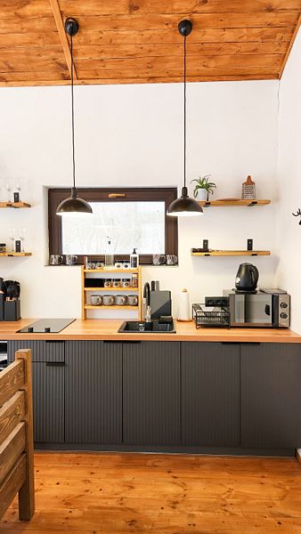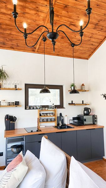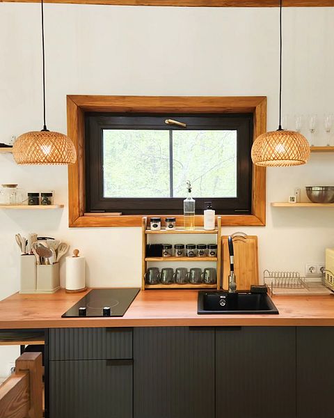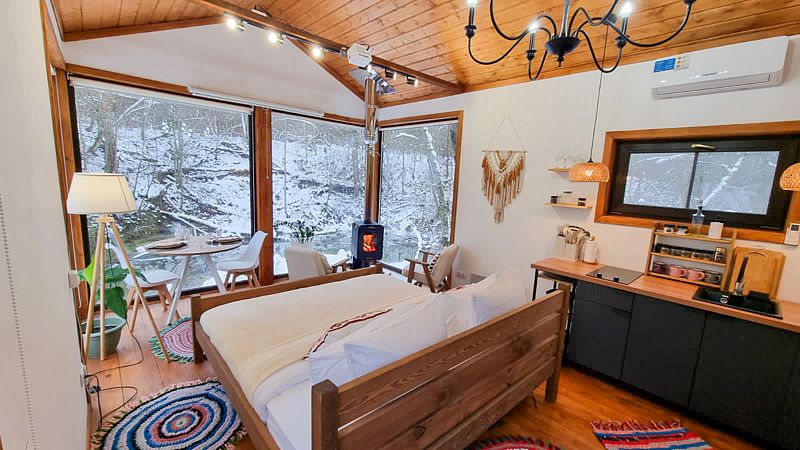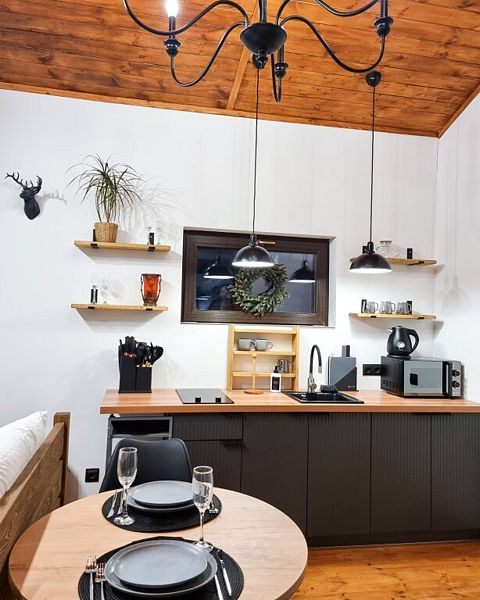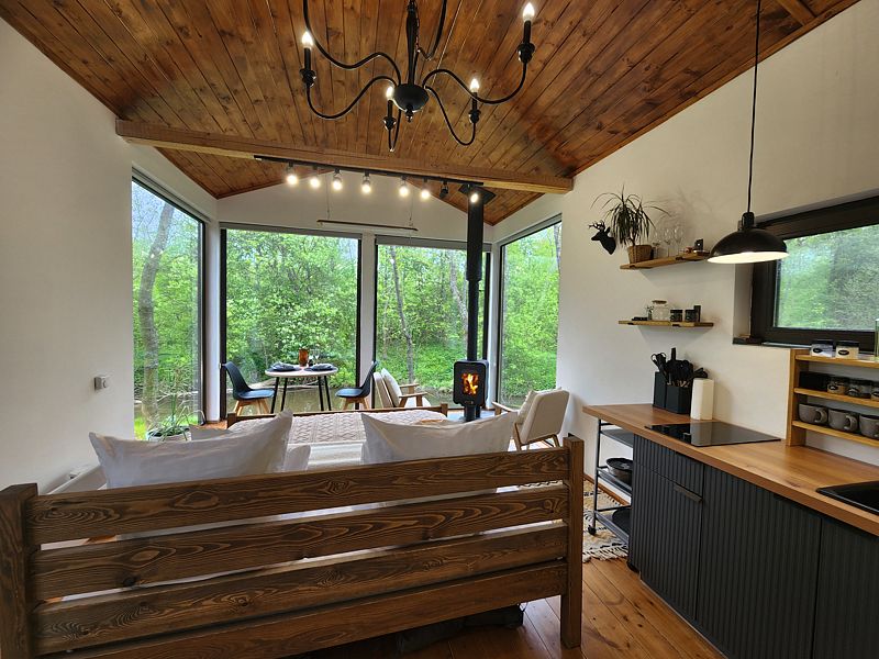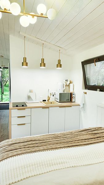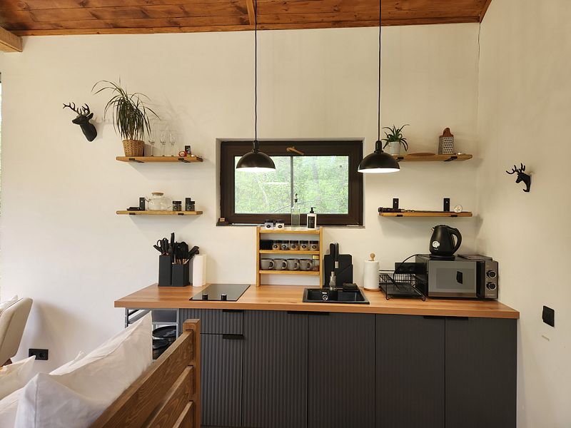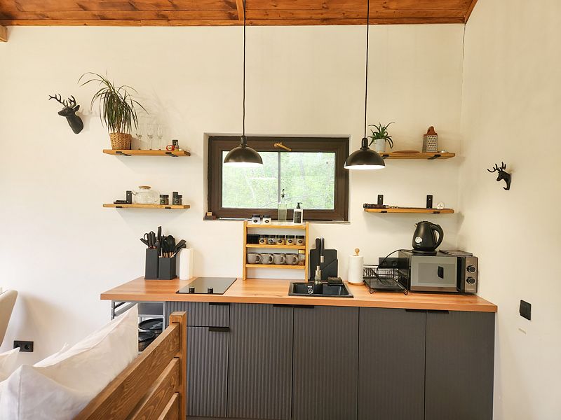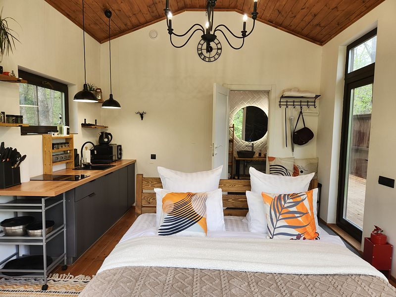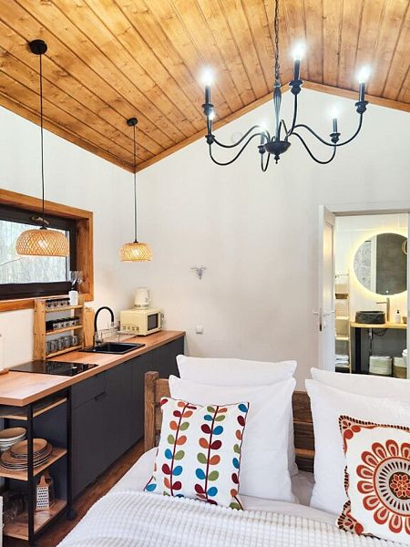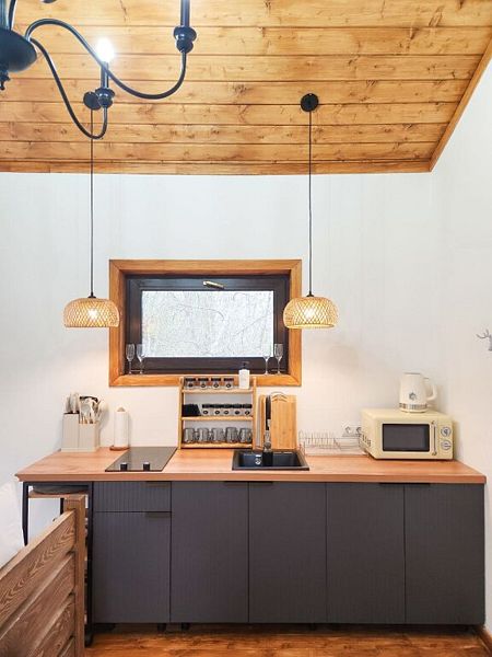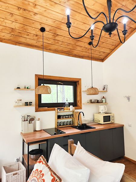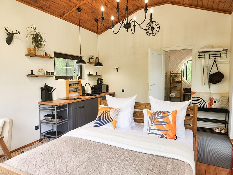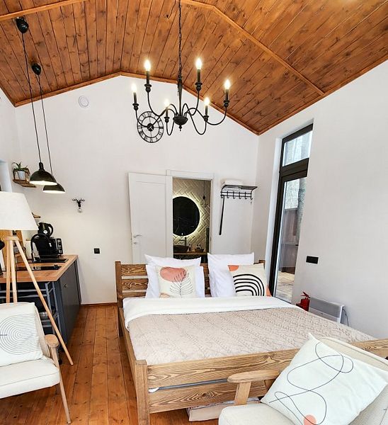 Уютные домик, оборудованный кухней и санузлом.