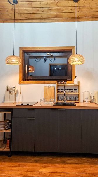 с/у,мини-холодильник,плита,мангал,колонка Алиса,камин,СВЧ,открытая терасса.