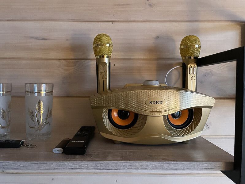 Любителям барбекю предоставляется мангал, шампуры и решетка. Уголь и розжиг необходимо привезти с собой. Для веселых вечеров в доме имеется караоке с двумя микрофонами, что позволит вам проявить свои вокальные таланты.