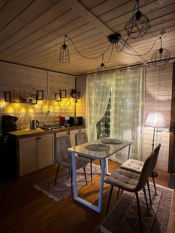 В доме созданы все условия для комфортного проживания: белоснежное постельное белье и мягкие махровые полотенца, полностью оборудованная кухня с посудой на 4 персоны. В холодное время года дом обогревается умными конвекционными обогревателями, обеспечивая приятную температуру. На закрытой территории участка имеется парковка на два автомобиля.