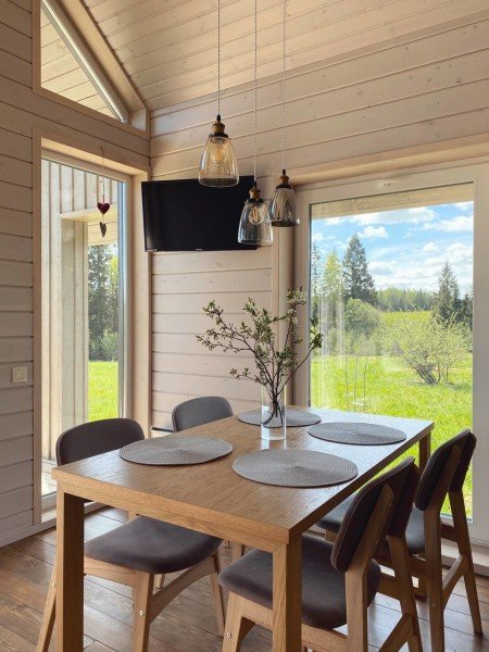 Семейный отдыхДостоинстваЗдесь так хорошо, что уезжать абсолютно не хотелось.Обстановка и условия для отдыха продуманы до мельчайших деталей. За все дни отдыха не возникло нужды ни в чем - все, что нужно, предоставлено с большой заботой и теплотой. Также хочу отметить, что находиться в этом доме очень приятно еще и потому, что в нем много окон)) Вокруг такая красота, что невозможно не вдохновиться на новые свершения)