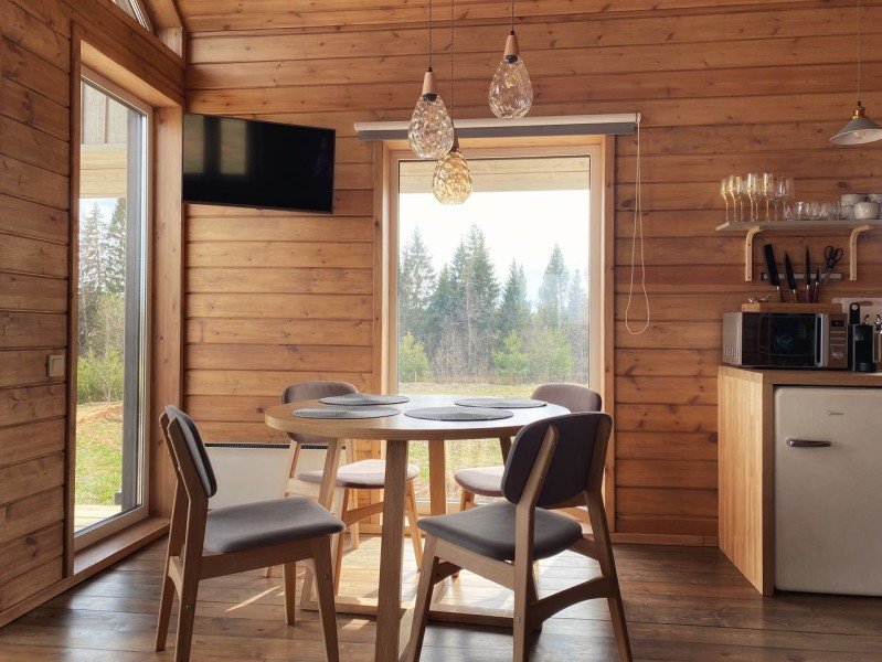 Здесь вы найдете комфортабельные коттеджи с панорамным видом и всем необходимым для полноценного отдыха. Расслабьтесь в русской бане, почувствуйте запах свежего дерева и насладитесь видом на лес с террасы.