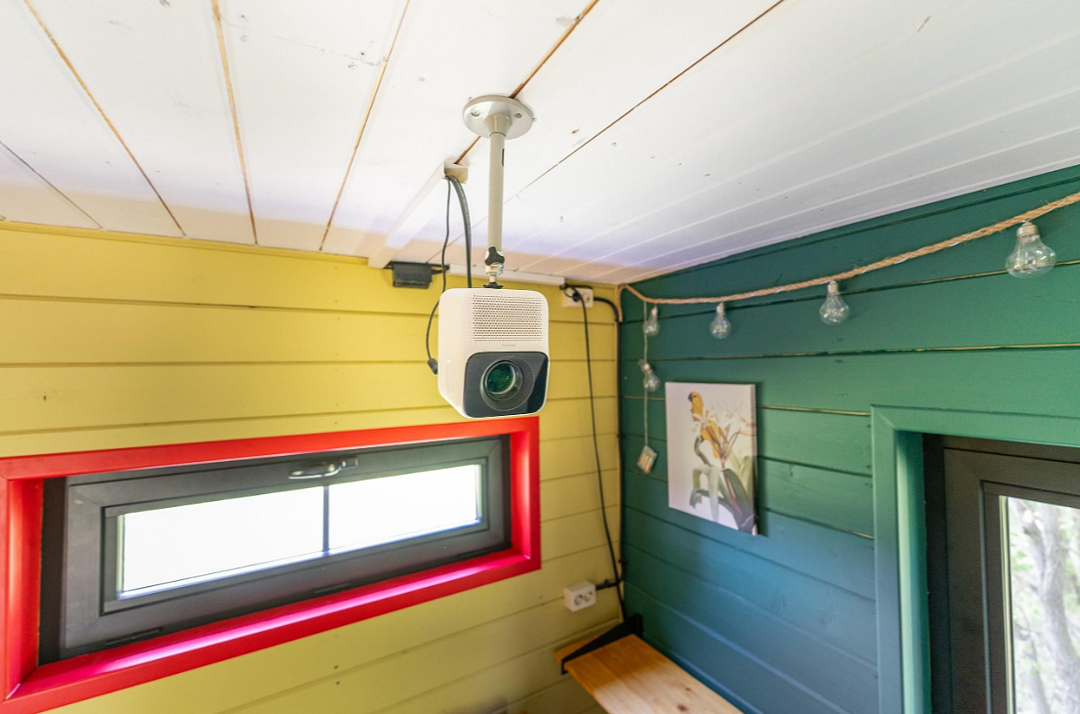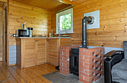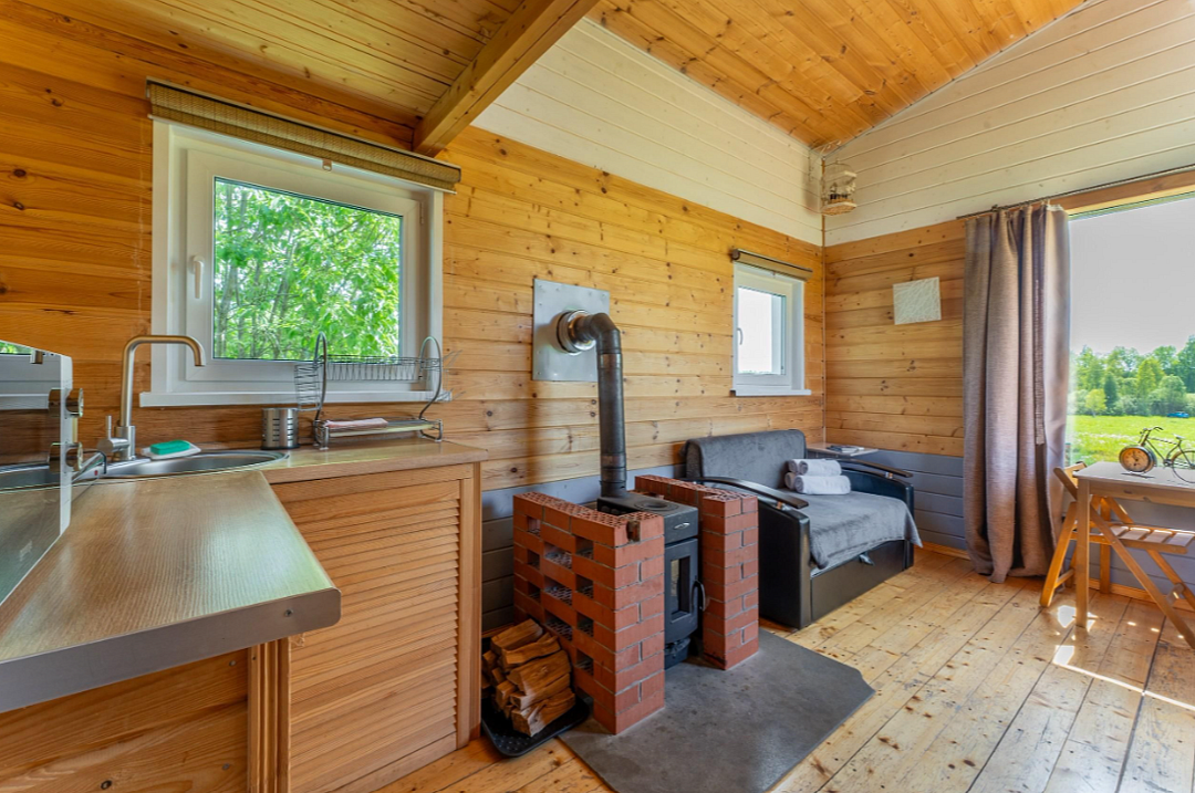 Полноценная кухня, уютный камин, тёплый пол, проектор — всё для комфортной уединённой поездки.