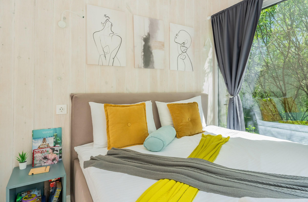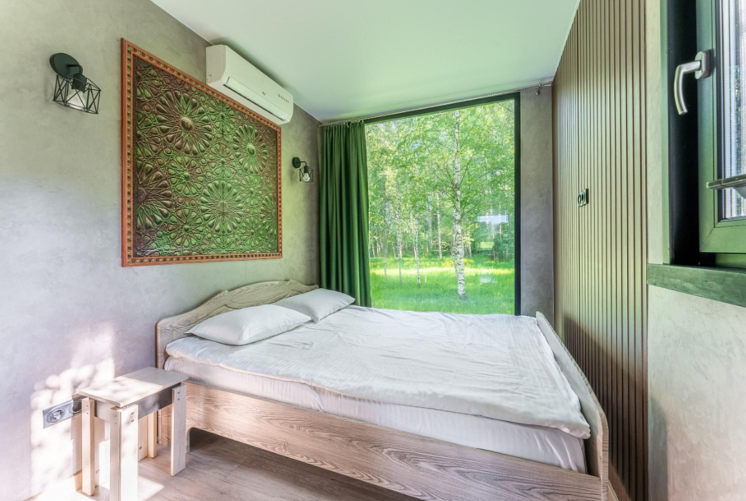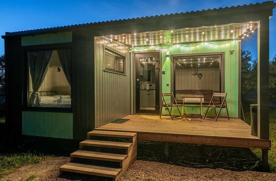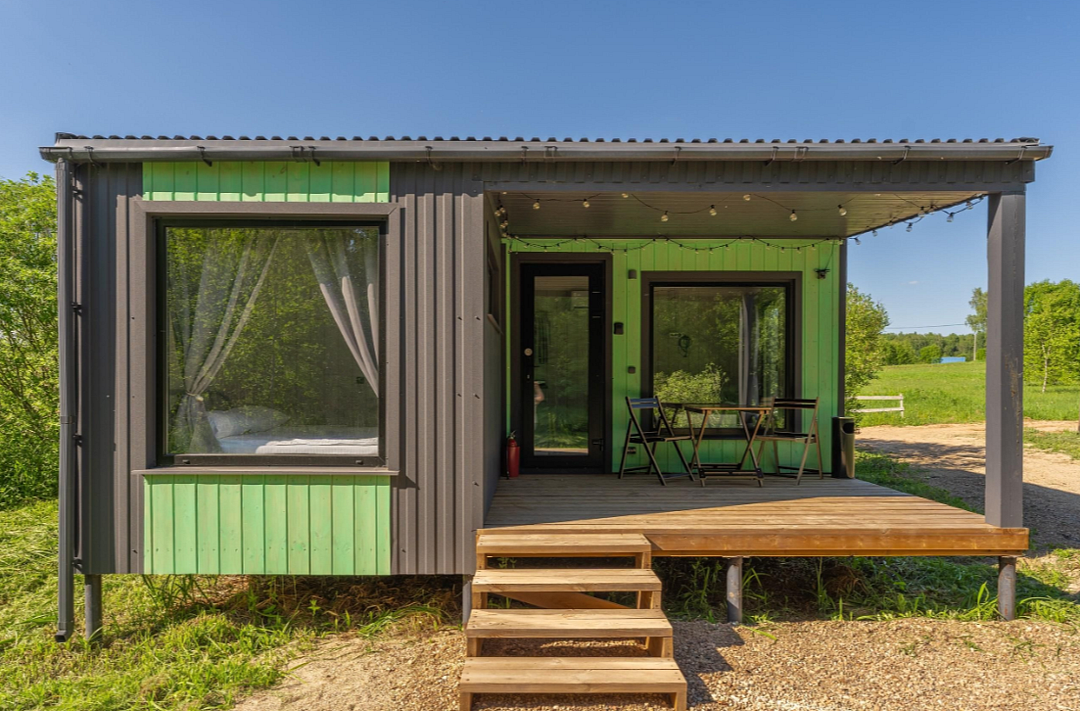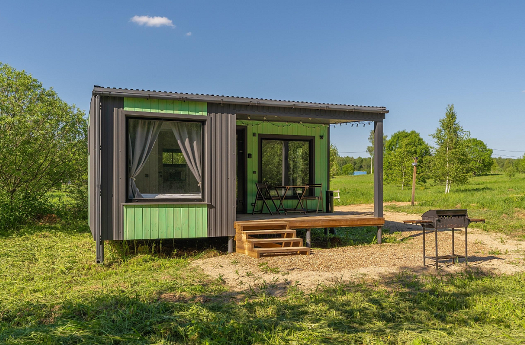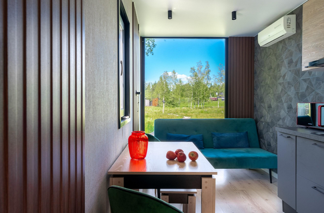 Дом расположен в охраняемом глэмпинг-посёлке Flacon Village — это современное пространство с душой.