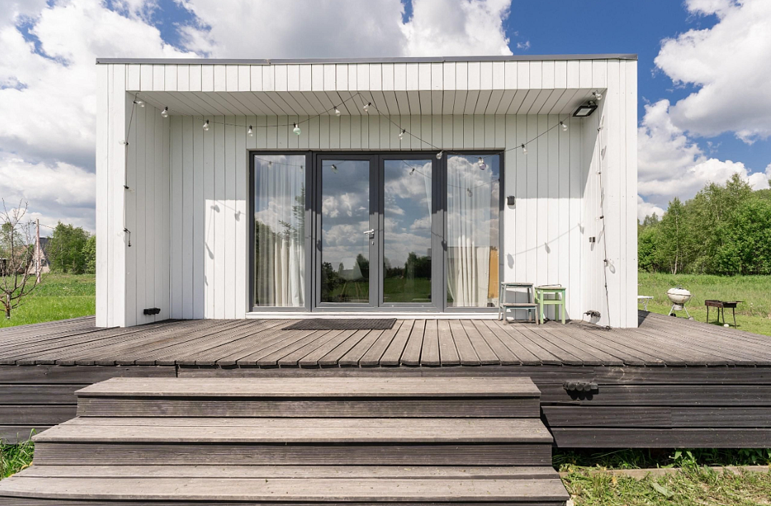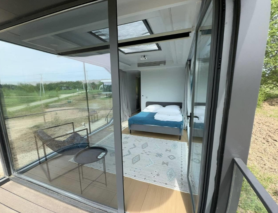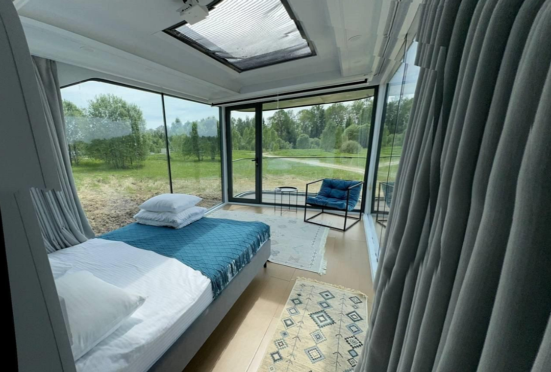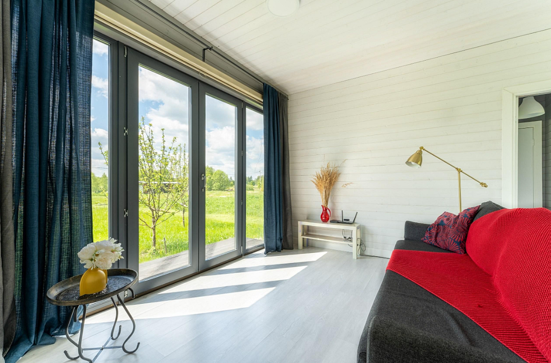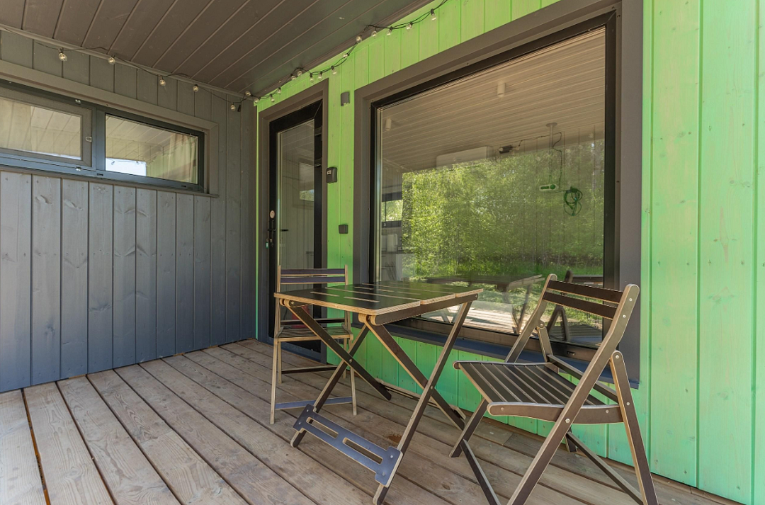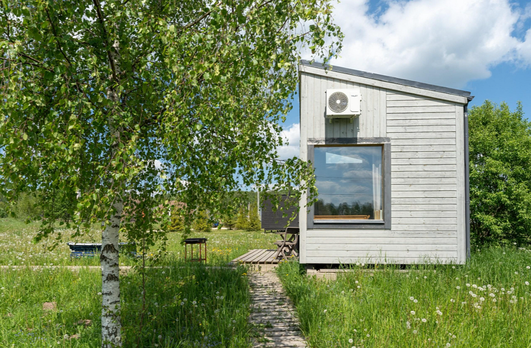Дом расположен в охраняемом глэмпинг-посёлке Flacon Village — это современное пространство с душой.