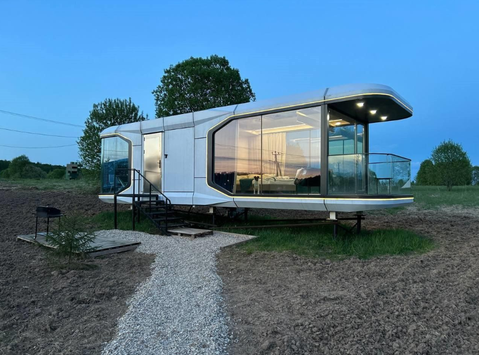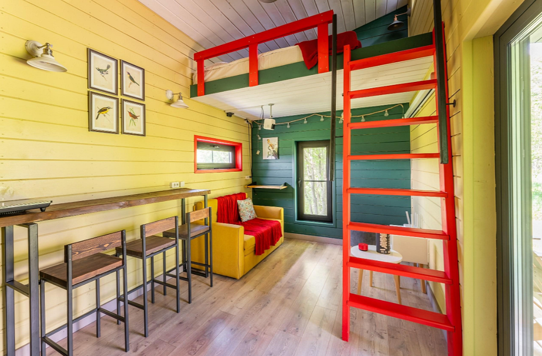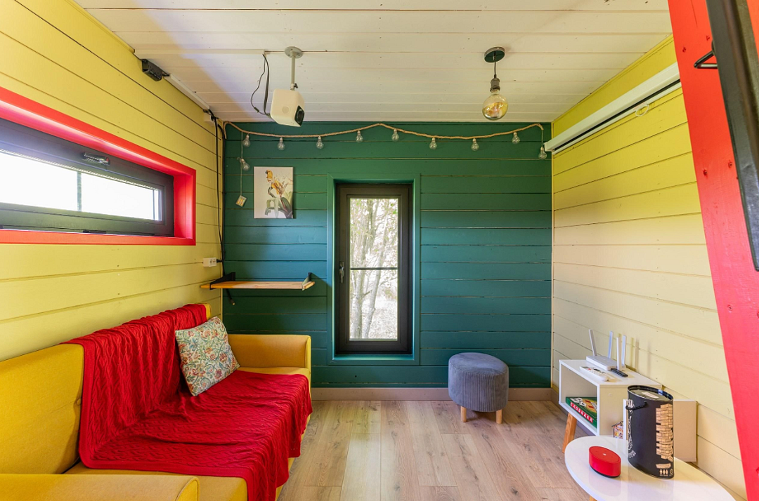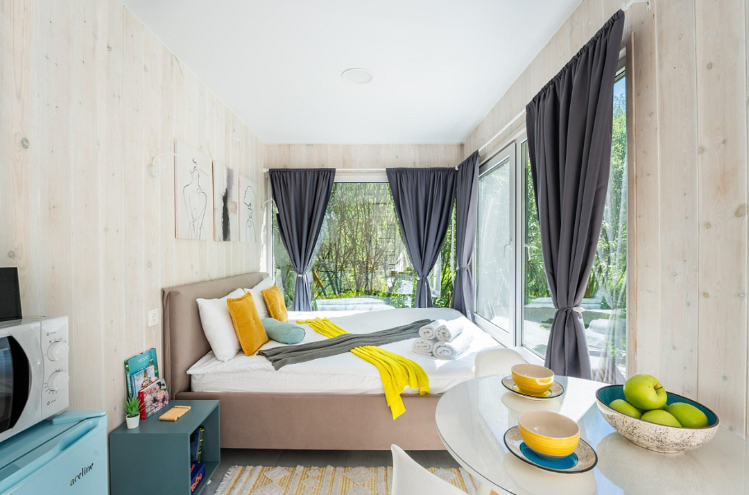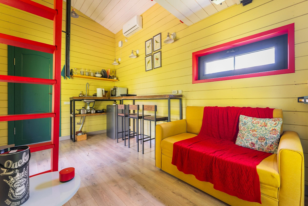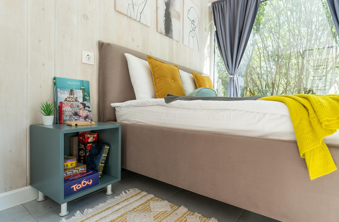 Дом расположен в охраняемом глэмпинг-посёлке Flacon Village — это современное пространство с душой.