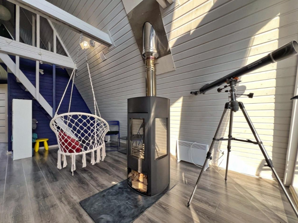 Для романтиков и тех, кто хочет уединения. Теплый домик с кухней, камином плюс телескоп смотрите на звёзды прямо с террасы. Идеально для тихого отдыха вдали от городской суеты.