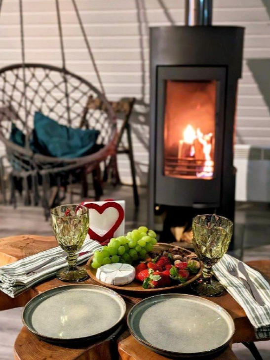 В домах «Прованс», «Звёздное небо», «Рейкьявик» установлены панорамные камины, дрова или брикеты для растопки камина предоставляются на несколько топок, больше — за дополнительную плату.