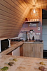 Каждый из комфортабельных домиков спроектирован для всесезонного пребывания. Для создания атмосферы уюта и поддержания тепла предусмотрен камин, система подогрева полов, а также мягкие пледы и удобные тапочки. Ванная комната оборудована всем необходимым: туалетом, душевой кабиной, раковиной, полотенцами, мылом и шампунем. Кухонная зона оснащена микроволновой печью, плитой, чайником, станцией «Алиса», раковиной с питьевой водой, полным комплектом посуды для приготовления и сервировки, а также гейзерной кофеваркой. Для приятных вечеров предусмотрены барная стойка со стульями.