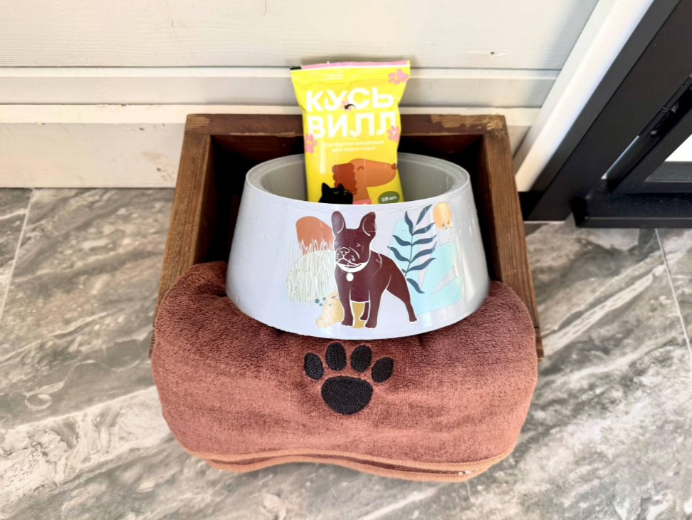 Плата за одно животное составляет 2 000 ₽ за весь заезд в домах Прованс, Звёздное небо, Рейкьявик, в остальных домах — 1000 ₽.
