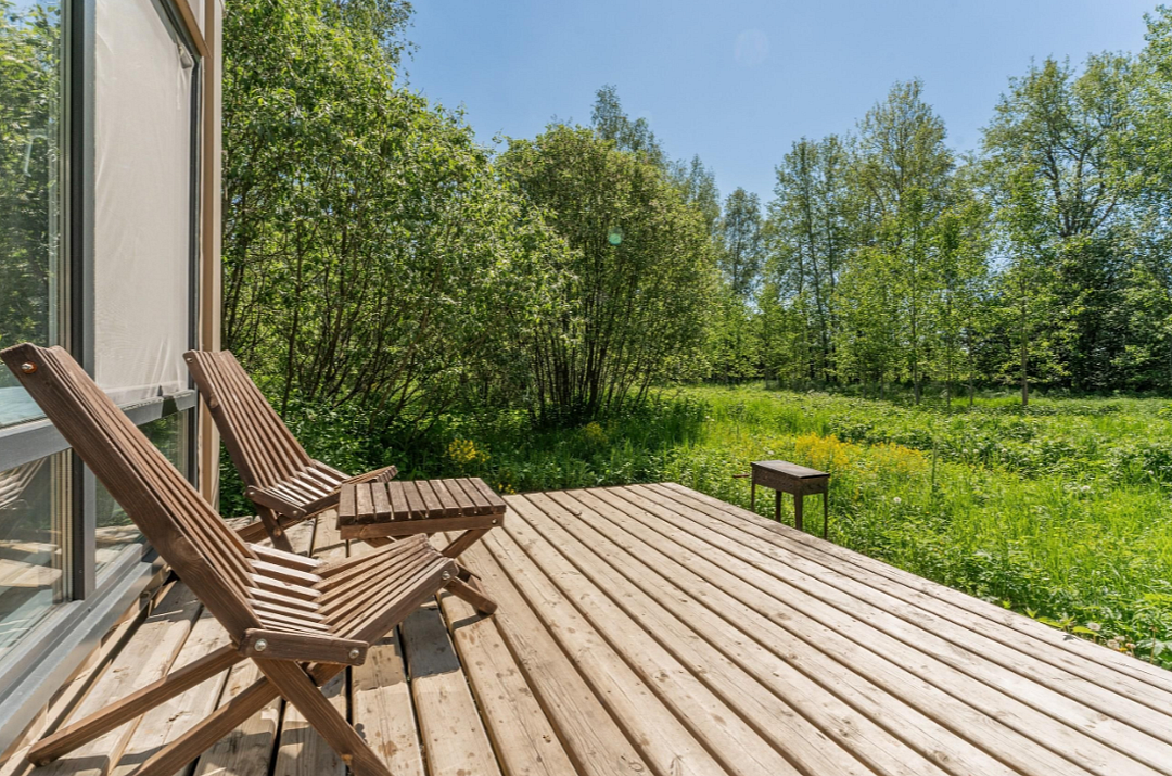 Просторный дом площадью 65 м² с большой благоустроенной террасой — идеальное место для отдыха в тишине и единении с природой. Из окон открывается вид на чистый, нетронутый лес и живописные поля.