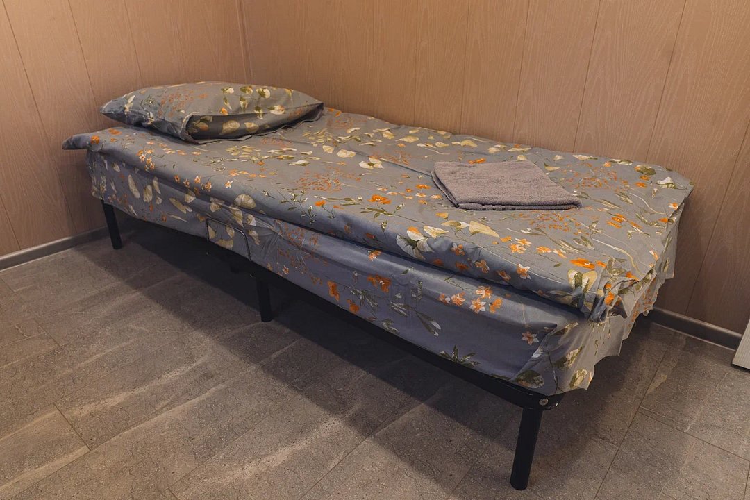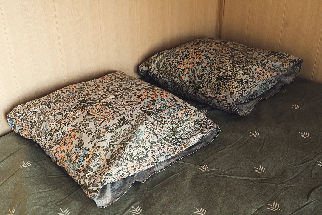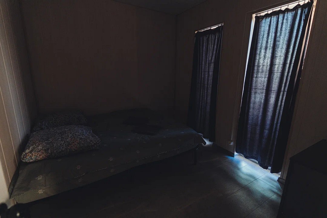 В домике — четыре спальни (четыре 1.5-спальные кровати и две 2-спальные), кухня-гостиная с холодильником, душ/туалет.