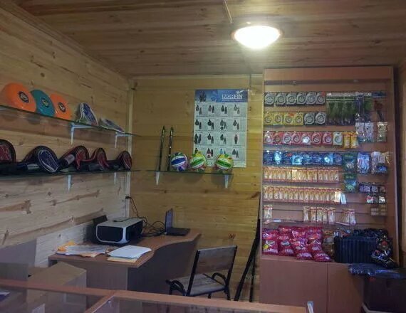 - рыболовный магазин, в котором можно приобрести всё для успешной ловли, в том числе блесны, удочки, леску, разнообразные прикормки и многое другое;