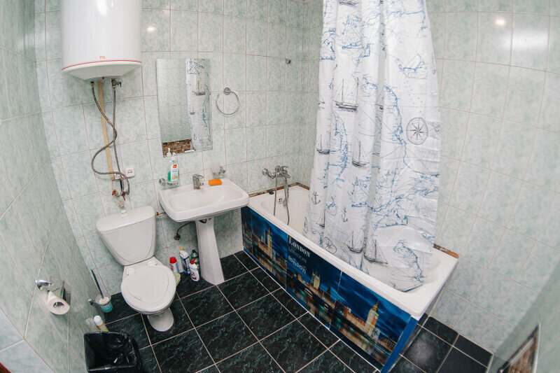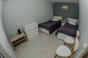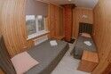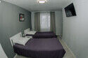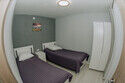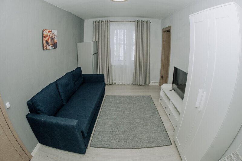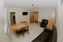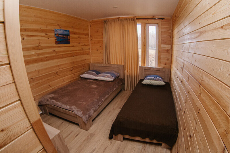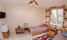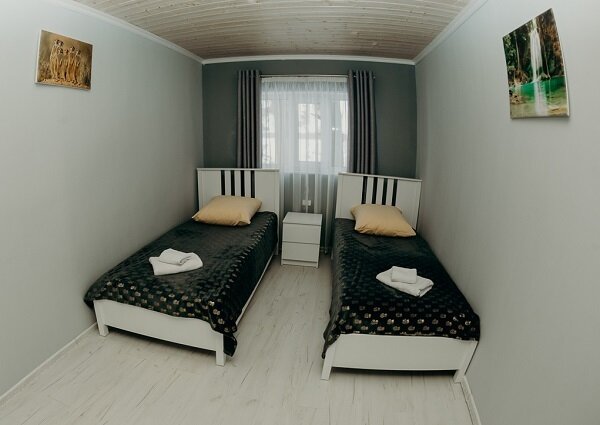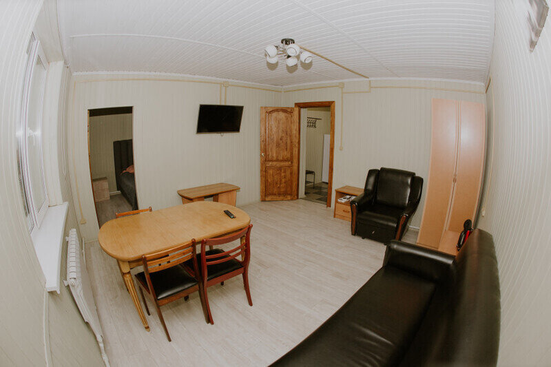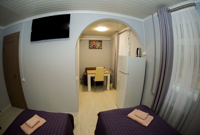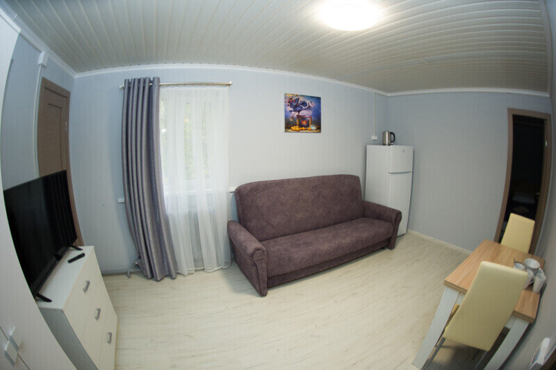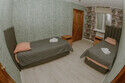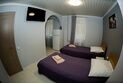 Трехместный номер: две комнаты, туалет и душ, 2 одноместные кровати и диван-кровать. Для комфортного отдыха также имеются: телевизор, чайник, посуда, мини-холодильник.
