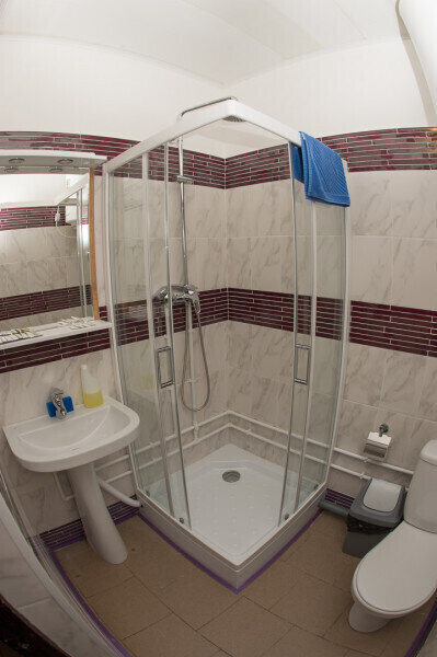 Все удобства в номере: душ, раковина, туалет. Для комфортного отдыха также имеются: телевизор, чайник, посуда, мини-холодильник.