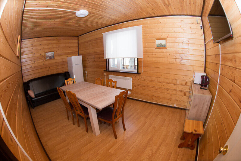 НедостаткиВ парилке плохой свет и для 4 х человек мало места, в домике не очень тепло в холодное время года. Телевизор показывает только одну программу!