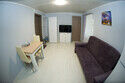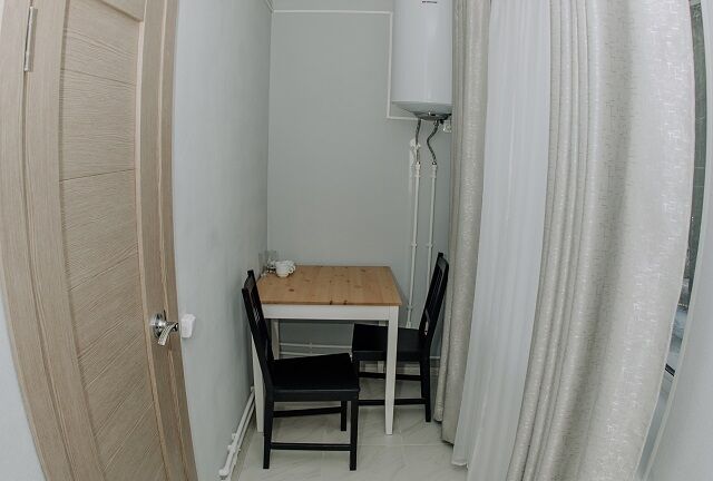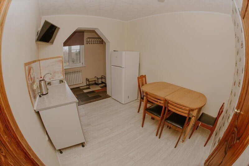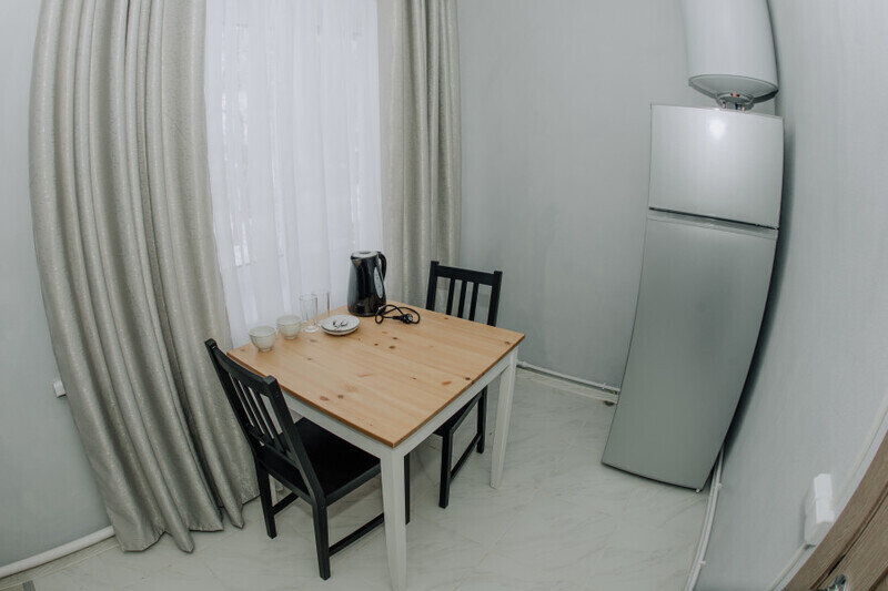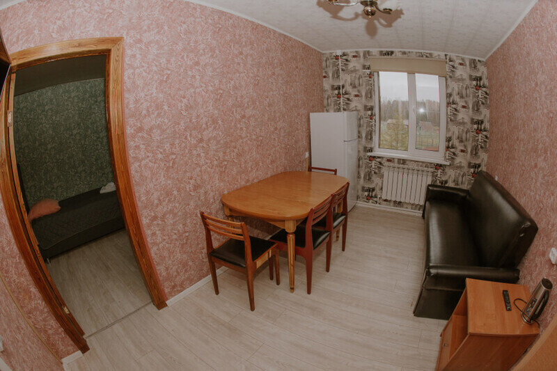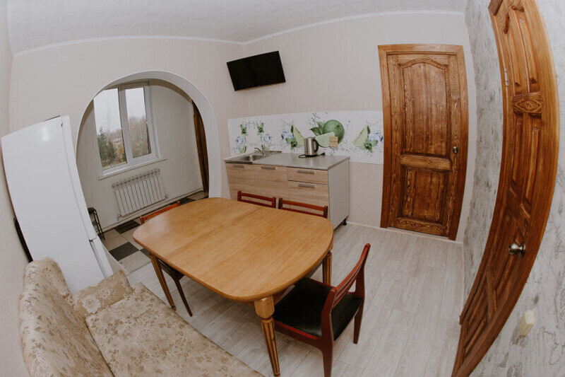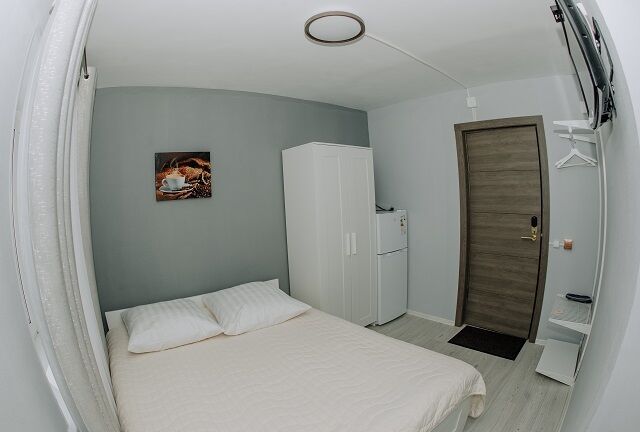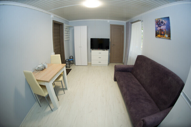 Вместимость 2 человека, одна комната, санузел. В номере есть чайник, телевизор, холодильник и посуда для чая, обеденный стол.